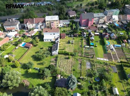 Ve výhradním zastoupení nabízíme k prodeji pozemek o výměře 279 m2, který je situován na jednom z dílců zahrádkářské kolonie, umístěné v území ohraničeném na severní straně řekou Bílinou a jižní straně rezidenční zástavbou a jejími zahradami v Čapkově ulici. Na ostatních stranách pak zástavbou obce. Přístup a příjezd do lokality, užívané výhradně pro zahrádkářskou a rekreační činnost, je z Čapkovy ulice podél řeky po nezpevněné komunikaci a přes uzamykatelné oplocení k prvním dílcům. Uvnitř kolonie jsou pouze pěšiny mezi dílci. Pro zahrádkářskou činnost je k dispozici rozvod užitkové vody z řeky a jednotlivé chatky lze napojit na elektřinu. Na okraji nabízené zahrady je umístěna starší zahrádkářská celodřevěná chatka o ploše 5,70 m2, jedná se o jednoduchou stavbu osazenou na cihelném soklíku. Trámová konstrukce je s nízkým sedlovým krovem s krytinou z asfaltovaného šindele, včetně oplechování. Bez vnitřních instalací, oken a hygienického vybavení. Skleník je z ocelových profilů osazený na betonovém základu s plochou cca 9,5 m2. Ovocné dřeviny: jabloň polokmen, švestka, broskvoň, 2x angrešt, 2x rybíz červený, joska a 3x borůvka velkoplodá. Dostupnost, zastávka MHD do 200 m. Zahrádkářská kolonie, je částečně v záplavovém území. Vlastníci preferují prodej zahrady, pokud by to bylo možné, současně s prodejem další nemovitosti v sousedství této zahrady v ulici Čapkova č.p. 153. Prodávající si vyhrazuje právo vybrat kupujícího na základě jím zvolených kritérií.