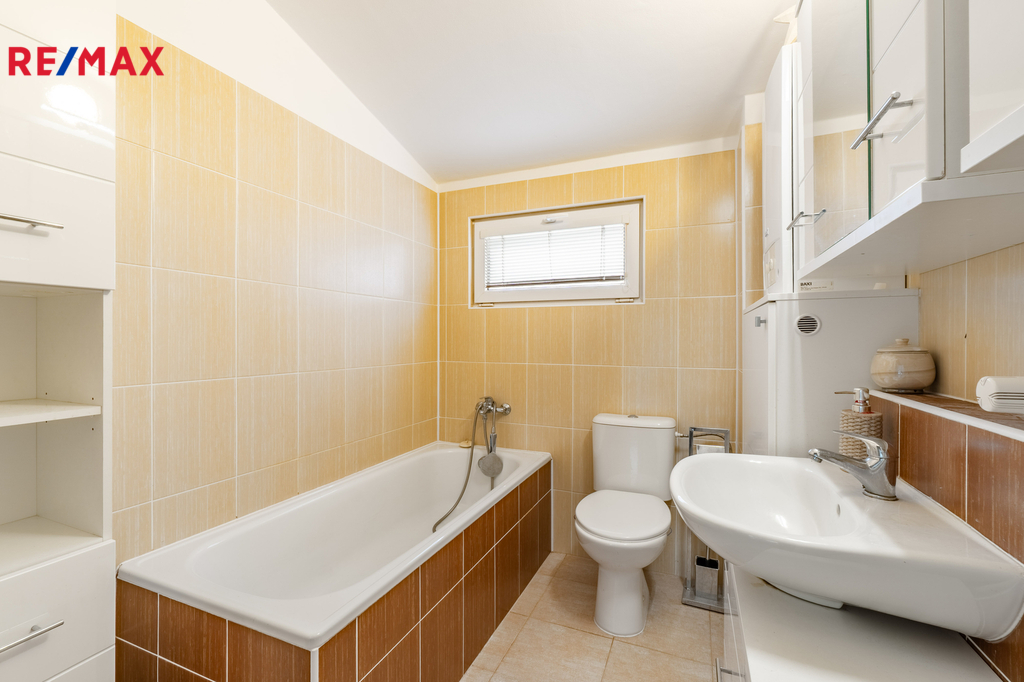 Nabízím k pronájmu moderní dvoupodlažní rodinný dům o dispozici 4+kk v klidné obci Hostouň u Prahy, vzdálené jen několik minut od hranic hlavního města. Dům je situován v tiché lokalitě, kde máte naprosté soukromí – sousedé nevidí na pozemek a za zahradou se rozprostírá malý lesík, který poskytuje nejen krásný výhled, ale také příjemný odstup od okolní zástavby. Dům je ve výborném technickém stavu, byl postaven před 6 lety a nabízí pohodlné moderní bydlení s dostatkem úložného prostoru. V každé místnosti se nacházejí vestavěné skříně na míru, včetně předsíně. Dispozičně je dům řešen velmi prakticky – v přízemí se nachází prostorný obývací pokoj s kuchyňským koutem, chodba s úložným prostorem, sprchový kout, toaleta a v patře pak 3 pokoje a koupelna s vanou a WC. Dům je plně vybavený a připravený k nastěhování. Na pozemku o celkové výměře 152 m² (zadní zahrada má rozměr 61 m2, dům má zastavěnou plochu 50 m 2 + 2 parkovací stání před domem) se nachází parkovací místa, za domem pak soukromá zahrada se zastřešeným posezením, místem připraveným pro vířivku a samostatným zahradním domkem, který je aktuálně využíván jako dílna/sklad. Dům i dílna jsou zateplené, připojené na elektřinu a ve velmi dobrém stavu. Okna domu jsou vybavena sítěmi proti hmyzu. Hostouň u Prahy je ideální lokalitou pro ty, kteří chtějí bydlet v klidu a zeleni, ale přitom být na dosah městu. Spojení s Prahou je zajištěno autobusovými linkami PID – přímé spojení autobusem č. 306 na Zličín trvá přibližně 35 minut. V obci je základní občanská vybavenost, školka, obchod a restaurace, širší nabídka služeb je dostupná v nedalekém Kladně nebo v Praze. Měsíční nájemné činí 35 000 Kč. K tomu se hradí měsíční poplatky ve výši 6 000 Kč, které zahrnují elektřinu, plyn, vodu a další běžné provozní náklady. Kauce činí 35 000 Kč. Provize realitní kanceláře je jeden měsíční nájem + DPH. Tento dům je vhodný pro rodinu, pár i náročné jednotlivce, kteří hledají komfortní a útulné bydlení s dostatkem prostoru uvnitř i venku, s bonusem naprostého soukromí. V případě zájmu o prohlídku mne neváhejte kontaktovat. Budu se těšit.