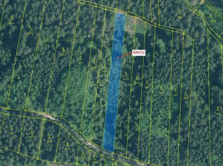 Lesní pozemek o výměře 1517 m2, parcelní číslo 929/12, podíl 1/1, katastrální území Hosty, obec Hosty, obec s rozšířenou působností Týn nad Vltavou, okres České Budějovice, Jihočeský kraj.