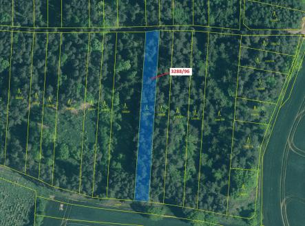 Lesní pozemek o výměře 1630 m2, parcelní číslo 3288/96, podíl 1/1, katastrální území Hosty, obec Hosty, obec s rozšířenou působností Týn nad Vltavou, okres České Budějovice, Jihočeský kraj. Po těžbě.