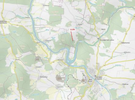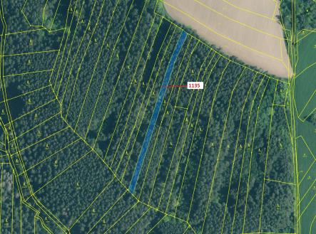Lesní pozemek o výměře 1789 m2, parcelní číslo 1135, podíl 1/1, katastrální území Hosty, obec Hosty, obec s rozšířenou působností Týn nad Vltavou, okres České Budějovice, Jihočeský kraj. Částečně po těžbě.