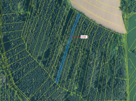 Lesní pozemek o výměře 1789 m2, parcelní číslo 1135, podíl 1/1, katastrální území Hosty, obec Hosty, obec s rozšířenou působností Týn nad Vltavou, okres České Budějovice, Jihočeský kraj. Částečně po těžbě.