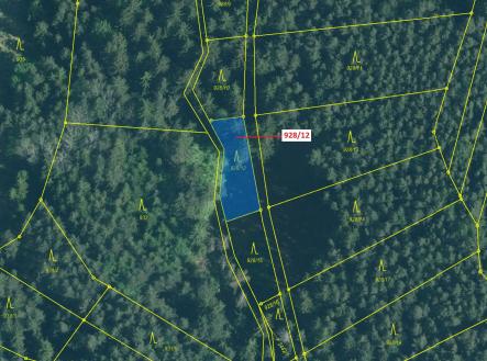 Lesní pozemek o výměře 418 m2, parcelní číslo 928/12, podíl 1/1, katastrální území Hosty, obec Hosty, obec s rozšířenou působností Týn nad Vltavou, okres České Budějovice, Jihočeský kraj. Po těžbě.