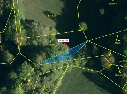 Lesní pozemek o výměře 173 m2, parcelní číslo 14483/4, podíl 1/1, katastrální území Hovězí, obec Hovězí, obec s rozšířenou působností Vsetín, okres Vsetín, Zlínský kraj.