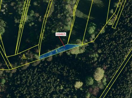 Lesní pozemek o výměře 312 m2, podíl 1/1, katastrální území Hovězí, obec Hovězí, obec s rozšířenou p