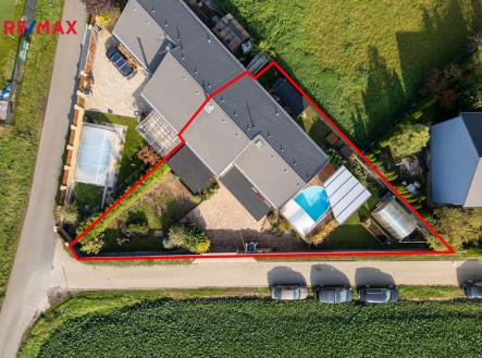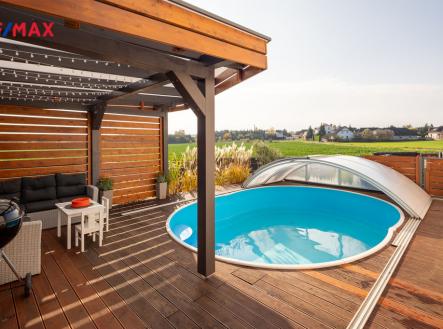 Prodej prostorného domu 4kk se zimní zahradou a bazénem, Hovorčovice, pozemek 524 m2