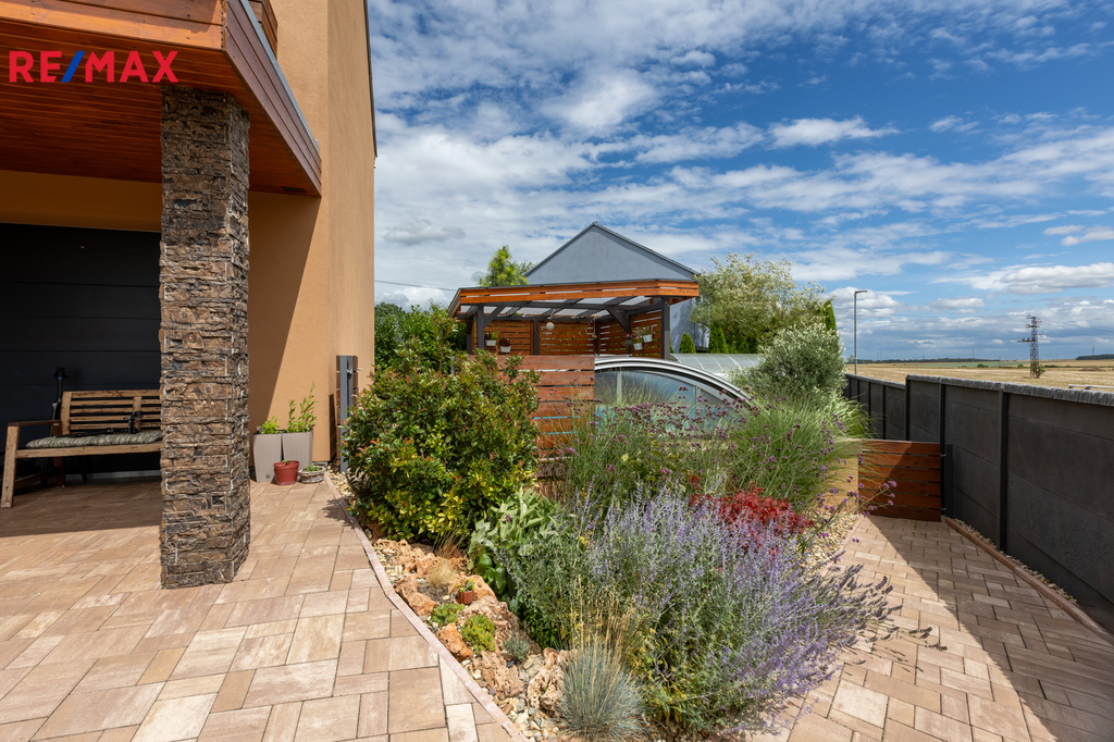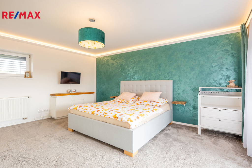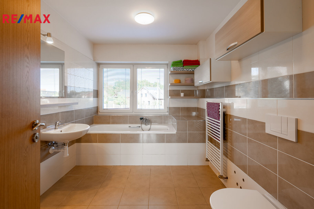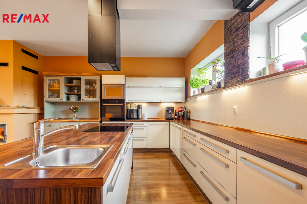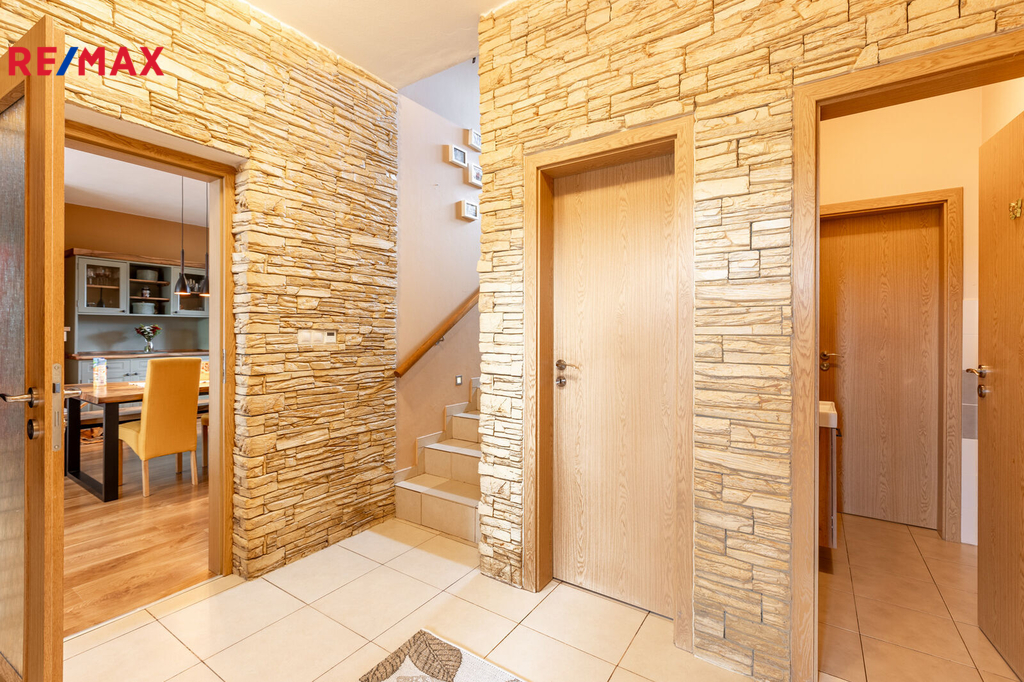Dovoluji si vám nabídnout prodej prostorného rodinného domu v Hovorčovicích, na adrese Březová 897. Dům kolaudovaný v roce 2012 nabízí komfortní bydlení s dostatkem prostoru a to vše na pozemku 524 m2. Dominantou přízemí je obytný prostor s krbem a kamenným obložením stěny a kuchyně s ostrůvkem, navazující na zimní zahradu, dále předsíň s chodbou, toaleta a schodiště do patra - 98 m2. Z prostorné garáže (18,5 m2) je vstup přímo v domu. Patro tvoří ložnice 21 m2, ze které je vstup na lodžii, 2 pokoje (16,5 m2 a 12,5 m2), koupelna s vanou a toaletou, chodba, šatna, sklad - 67 m2. Půdní prostor nabízí možnost vybudování dalších místností. Dům je vytápěn plynovým kotel a krbem s rozvodem do patra, kde je již vše připraveno (včetně tahového motoru) pro rozvedení do všech místností. Příjemná je i klimatizace v přízemí a v patře ve dvou pokojích. Na oknech jsou instalovány venkovní žaluzie. Podlahy v přízemí v obytném prostoru jsou plovoucí, na chodbě, předsíni a toaletě je dlažba. V patře jsou koberce v ložnici a pokoji, v druhém pokoji plovoucí, na chodbě a v koupelně je dlažba. Po vzájemné dohodě je možné ponechat část vybavení domu. U domu je krásná a udržovaná zahrada se vzrostlými keři. Na dům navazuje terasa, na které je umístěna pergola s posezením, bazén s novým zastřešením. Příjemné zpestření je i skleník a vyvýšené záhony se zavlažováním. Praktický je pak zahradní domek umístěný za domem a nádrž na dešťovou vodu. Hovorčovice mají základní občanskou vybavenost – Městský úřad, mateřská a základní škola, obchody, lékárna i pošta, několik hřišť a sportoviště. Příjemný je i navazující lesík či zámecký park, který nabízí možnost procházek či relaxace. Výborná dopravní dostupnost - BUS - 18 minut "M" Letňany, vlak - 30 minut Hlavní nádraží. Dům je ideální volbou pro ty, kteří chtějí bydlet v blízkosti přírody, ale zároveň ocení rychlou dostupnost do Prahy.