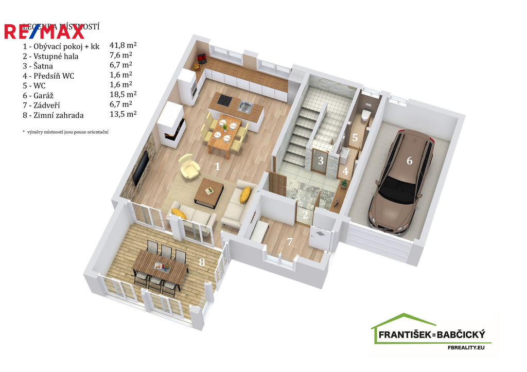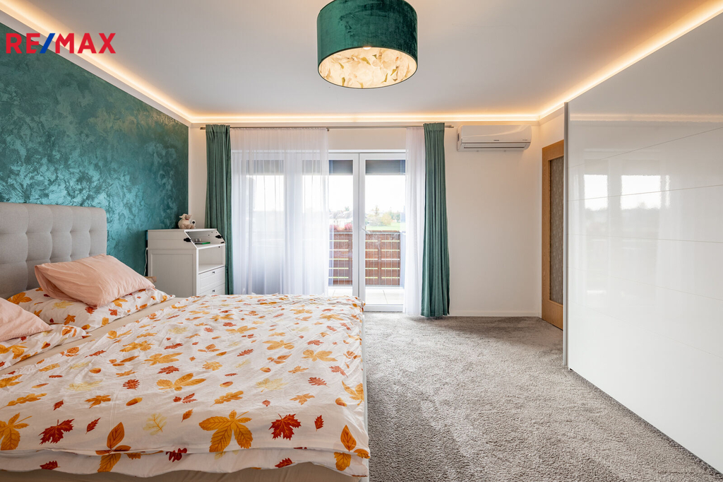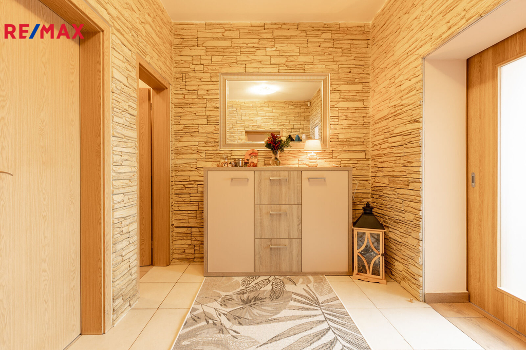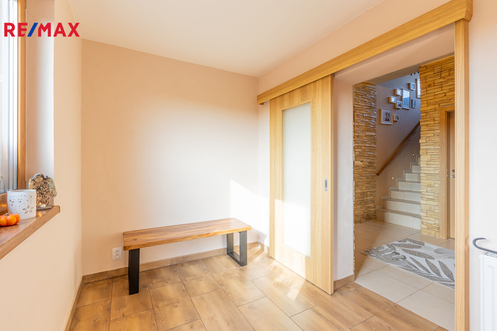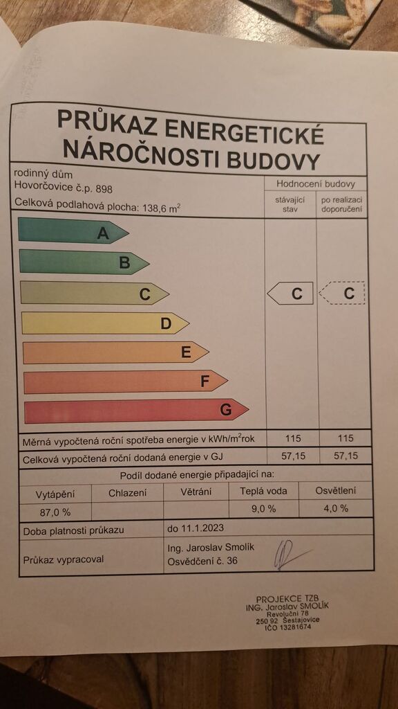 Dovoluji si vám nabídnout prodej prostorného rodinného domu v Hovorčovicích, na adrese Březová 897. Dům kolaudovaný v roce 2012 nabízí komfortní bydlení s dostatkem prostoru a to vše na pozemku 524 m2. Dominantou přízemí je obytný prostor s krbem a kamenným obložením stěny a kuchyně s ostrůvkem, navazující na zimní zahradu, dále předsíň s chodbou, toaleta a schodiště do patra - 98 m2. Z prostorné garáže (18,5 m2) je vstup přímo v domu. Patro tvoří ložnice 21 m2, ze které je vstup na lodžii, 2 pokoje (16,5 m2 a 12,5 m2), koupelna s vanou a toaletou, chodba, šatna, sklad - 67 m2. Půdní prostor nabízí možnost vybudování dalších místností. Dům je vytápěn plynovým kotel a krbem s rozvodem do patra, kde je již vše připraveno (včetně tahového motoru) pro rozvedení do všech místností. Příjemná je i klimatizace v přízemí a v patře ve dvou pokojích. Na oknech jsou instalovány venkovní žaluzie. Podlahy v přízemí v obytném prostoru jsou plovoucí, na chodbě, předsíni a toaletě je dlažba. V patře jsou koberce v ložnici a pokoji, v druhém pokoji plovoucí, na chodbě a v koupelně je dlažba. Po vzájemné dohodě je možné ponechat část vybavení domu. U domu je krásná a udržovaná zahrada se vzrostlými keři. Na dům navazuje terasa, na které je umístěna pergola s posezením, bazén s novým zastřešením. Příjemné zpestření je i skleník a vyvýšené záhony se zavlažováním. Praktický je pak zahradní domek umístěný za domem a nádrž na dešťovou vodu. Hovorčovice mají základní občanskou vybavenost – Městský úřad, mateřská a základní škola, obchody, lékárna i pošta, několik hřišť a sportoviště. Příjemný je i navazující lesík či zámecký park, který nabízí možnost procházek či relaxace. Výborná dopravní dostupnost - BUS - 18 minut "M" Letňany, vlak - 30 minut Hlavní nádraží. Dům je ideální volbou pro ty, kteří chtějí bydlet v blízkosti přírody, ale zároveň ocení rychlou dostupnost do Prahy.