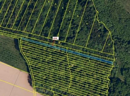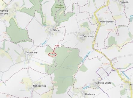 Lesní pozemek o výměře 1895 m2, parcelní číslo 459, podíl 1/1, katastrální území Hradčany na Moravě, obec Hradčany, obec s rozšířenou působností Přerov, okres Přerov, Olomoucký kraj. Po těžbě.