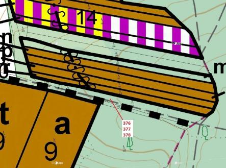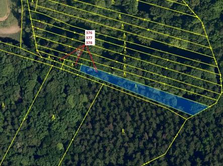 Lesní pozemky o výměře 1703 m2, parcelní čísla 376, 377, 378, podíl 1/1, katastrální území Hradčany na Moravě, obec Hradčany, obec s rozšířenou působností Přerov, okres Přerov, Olomoucký kraj. Po těžbě.