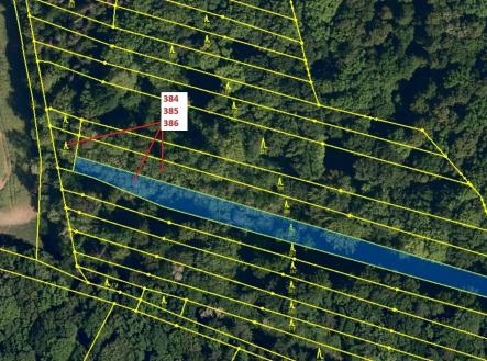 Lesní pozemky o výměře 3483 m2, parcelní čísla 384, 385, 386, podíl 1/1, katastrální území Hradčany na Moravě, obec Hradčany, obec s rozšířenou působností Přerov, okres Přerov, Olomoucký kraj. Po těžbě.