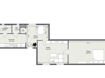 Nabízíme k prodeji byt o dispozici 3+1 a podlahové ploše 70 m², který se nachází v přízemí cihlového domu v Hradci Králové, v městské části Kukleny. Byt je v osobním vlastnictví a prošel kompletní rekonstrukcí – má nové rozvody elektřiny a vody, renovované podlahy, novou koupelnu a samostatné WC. Okna jsou plastová s trojskly, které zajišťují dobré odhlučnění i tepelný komfort. Dispozice bytu zahrnuje vstupní chodbu, samostatnou kuchyni, koupelnu, toaletu a technickou místnost s umístěním elektrokotle a bojleru. Dále jsou zde tři pokoje, přičemž dva z nich jsou vzájemně průchozí. Největší z pokojů má přes 25 m² a slouží jako hlavní obytný prostor. V jeho centrální části je dostatek místa pro jídelní kout. Další dva pokoje mohou sloužit jako ložnice, dětský pokoj, pracovna nebo pokoj pro hosty. Byt je situován u rušnější ulice, což zajišťuje velmi dobrou dopravní obslužnost a dostupnost služeb. Díky kvalitnímu zasklení je však interiér tichý. Přízemní poloha je ideální pro seniory, rodiny s malými dětmi nebo kohokoli, kdo hledá bydlení bez bariér. V okolí se nachází veškerá občanská vybavenost – školy, školky, obchody i zastávky MHD. Součástí prodeje je také spoluvlastnický podíl na dvoře, který zajišťuje vlastní parkovací místo ve vnitrobloku. Byt je ihned k dispozici a bez právních vad. V případě zájmu o prohlídku nás neváhejte kontaktovat.