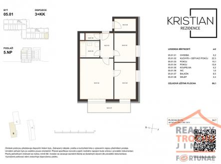 V novém developerském projektu Rezidence Kristian nabízíme prodej, moderního a nízkoenergetického bydlení v bytu 3+kk s balkónem a vnitřním parkovacím stáním ve vyhledávané lokalitě v Hradci Králové – Moravské Předměstí. Bytová jednotka se nachází v 5. NP zděného bytového domu, celková užitná plocha 68,1 m2, 1x balkón (6,5 m2), sklep 4,4 m2. Dispozice: vstupní chodba, obývací pokoj s kuchyňským koutem, jídelnou, ložnicí, pokojem, koupelna, WC. Vytápění: ústřední dálkové. K bytu náleží 1x vnitřní parkovací stání. Ve standardním provedení: plastová okna hranatá s izolačním trojsklem, vinylové podlahy KPP – výběr z 12 typů dekorů, koupelna s keramickou dlažbou La Ceramica Factory – výběr ze 4 dekorů, obklady Rako Systém, umyvadlo keramické se stojánkovou pákovou baterií, vana bílá akrylátová obdélníková. WC závěsné bílé. Použité materiály kombinují moderní technologie a udržitelnost a především snižují energetické náklady. Bytová jednotka se nachází na Moravském Předměstí v novostavbě bytového domu v Rezidenci Kristian. Výhodou lokality je veškerá občanská vybavenost v místě a výborná dopravní dostupnost. Pěkné, klidné bydlení pro rodinu s dětmi. Parkování je zajištěno v podzemních garážích a venkovních parkovištích přímo v rezidenci. Bližší informace Vám rádi sdělíme v realitní kanceláři. Máme pro Vás připraveny informace k hypotečnímu úvěru, který vyřídíme podle Vašich požadavků.