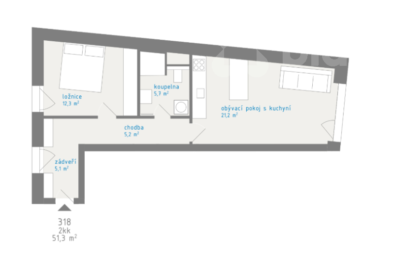 Nový byt 2+kk v moderní rezidenci v Hradci Králové Nabízíme k prodeji zcela nový byt 2+kk v nově realizovaném developerského projektu Rezidence Pra žská 84, který vzniká v atraktivní části Hradce Králové. Velikost bytu je 53,1 m2, byt je orientovaný na jih a nachází se ve 3.nadzemním podlaží. Projekt je výsledkem práce renomovaného ateliéru Žárovka Architekti a celkem nabízí 52 bytových jednotek. Od běžného projektu se odlišuje především nízkopodlažní zástavbou, menším počtem bytů v jednotlivých domech a uzavřeným, klidným konceptem bydlení. Soukromí, bezpečí a technologie budoucnosti Celá rezidence je navržena s důrazem na komfort, bezpečí a dlouhodobou udržitelnost. Obyvatelé mají k dispozici: vlastní fotovoltaickou elektrárnu s bateriovým úložištěm, sprinklerový systém jako aktivní protipožární ochranu, přípravu pro dobíjení elektromobilů u parkovacích stání. Díky těmto prvkům projekt nabízí nejen moderní bydlení, ale i nižší provozní náklady a vyšší míru bezpečí. Lokalita, která funguje Poloha projektu umožňuje rychlé a pohodlné spojení jak do centra města, tak mimo Hradec Králové. MHD je dostupná 1 minutu chůze, nájezd na dálnici D11 je vzdálený přibližně 2 minuty jízdy, do Prahy (Černý Most) se dostanete zhruba za hodinu autem. V bezprostředním okolí najdete lékaře, školy, školky i nákupní centrum Aupark, což dělá z lokality ideální místo pro každodenní život. Možnost klientských úprav Do určité fáze výstavby je možné: upravit standardy interiéru, u vybraných bytů měnit dispozici či podlahovou plochu, přizpůsobit bydlení vlastním představám ještě před dokončením. Parkování a společné prostory Veškerá parkovací stání jsou řešena v krytých prostorech pod budovou, takže okolí domů zůstává klidné, čisté a bez rušivých prvků. Na projekt navazuje komunitní zahrada, která vytváří přirozený prostor pro setkávání rezidentů i relax. Kvalitní standard bydlení Byty jsou navrženy s důrazem na funkční dispozice a nadčasový design. Standard zahrnuje kvalitní podlahy, dveře a obklady v souladu s aktuálními trendy, přičemž je možné zvolit i prémiové materiály. Financování bez starostí V případě potřeby vám zajistíme kompletní hypoteční servis a výhodné podmínky financování napříč bankovním trhem - od prvního návrhu až po podpis úvěrové smlouvy.