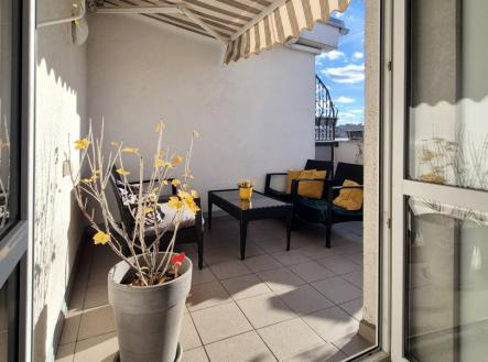 Prodej mezonetového bytu 3+kk o podlahové ploše 106 m2 s terasou 19 m2, sklepem a vlastní uzamykatelnou garáží o velikosti 15 m2 v podzemním podlaží. Byt se nachází v posledním 4. a 5. podlaží zděného bytového domu. V přízemí je předsíň, toaleta a vestavná šatní skříň. V patře je dispozičně řešeno kuchyňí s jídelním koutem propojenou s obývacím pokojem z kterého je vstup na terasu. Dále dětský pokoj, ložnice, koupelna s rohovou vanou a toaleta. Byt se prodává včetně veškerého vybavení a je tedy možné ho koupit i na investici s okamžitou možností k pronájmu, případně po dohodě vyklizený. Dům se nachází v blízkosti hradeckých lesů, které nabízí mnoho sportovních aktivit, zastávkou MHD a veškerou občanskou vybaveností v dosahu. Volný ihned k nastěhování.