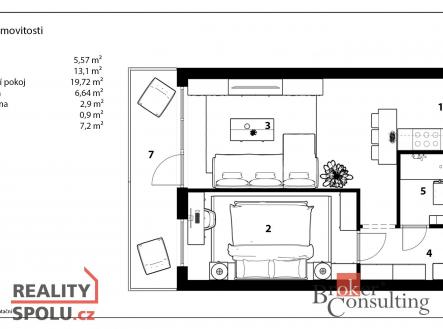 Pronájem bytu, 2+kk, 57 m²