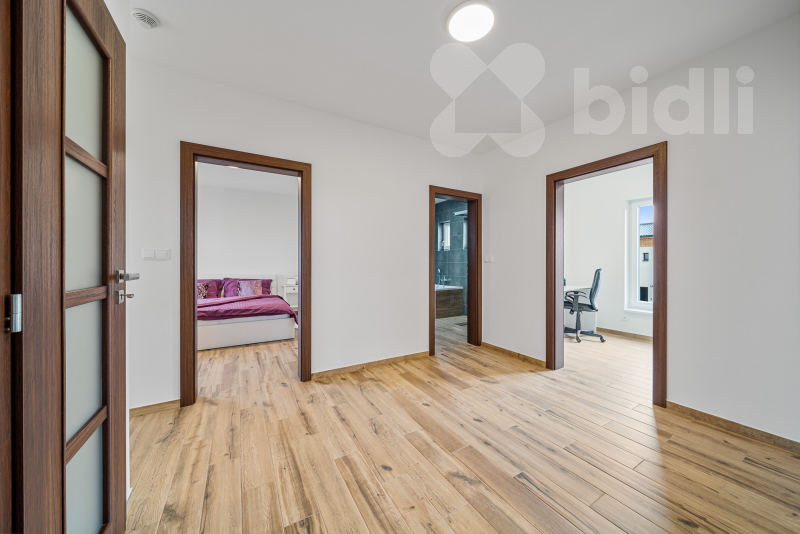 Zprostředkujeme Vám pronájem novostavby rodinného domu se zahradou o velikosti 5+kk o výměře cca 139 m2 v Hradci Králové, části obce Rusek. Jedná se o moderní prostorný dům, kde v přízemí je dispozici prosvětlený obývací pokoj s navazujícím kuchyňským koutem, dále samostatný pokoj (vhodný pro hosty), koupelna se sprchovým koutem a WC a provozní místnost (rekuperace a tepelné čerpadlo). V prvním patře jsou k dispozici tři pokoje (ložnice a dva dětské pokoje) a dále druhá koupelna s vanou i sprchou s WC a na závěr prostorná místnost využitelná jako pracovna, komora či šatna. Jedná se zajímavou uzavřenou lokalitu s dobrou dostupností do centra města a veškerou občanskou vybaveností. Dvojdomu také náleží jedno parkovací místo za branou a druhé před domem, kompletní oplocení pozemku a terasa před domem. Celková plocha pozemku je 453 m2. Nájemné je 45.000,- Kč + energie. Kauce dva nájmy, provize RK jeden nájem + DPH. Volné od ledna 2026.