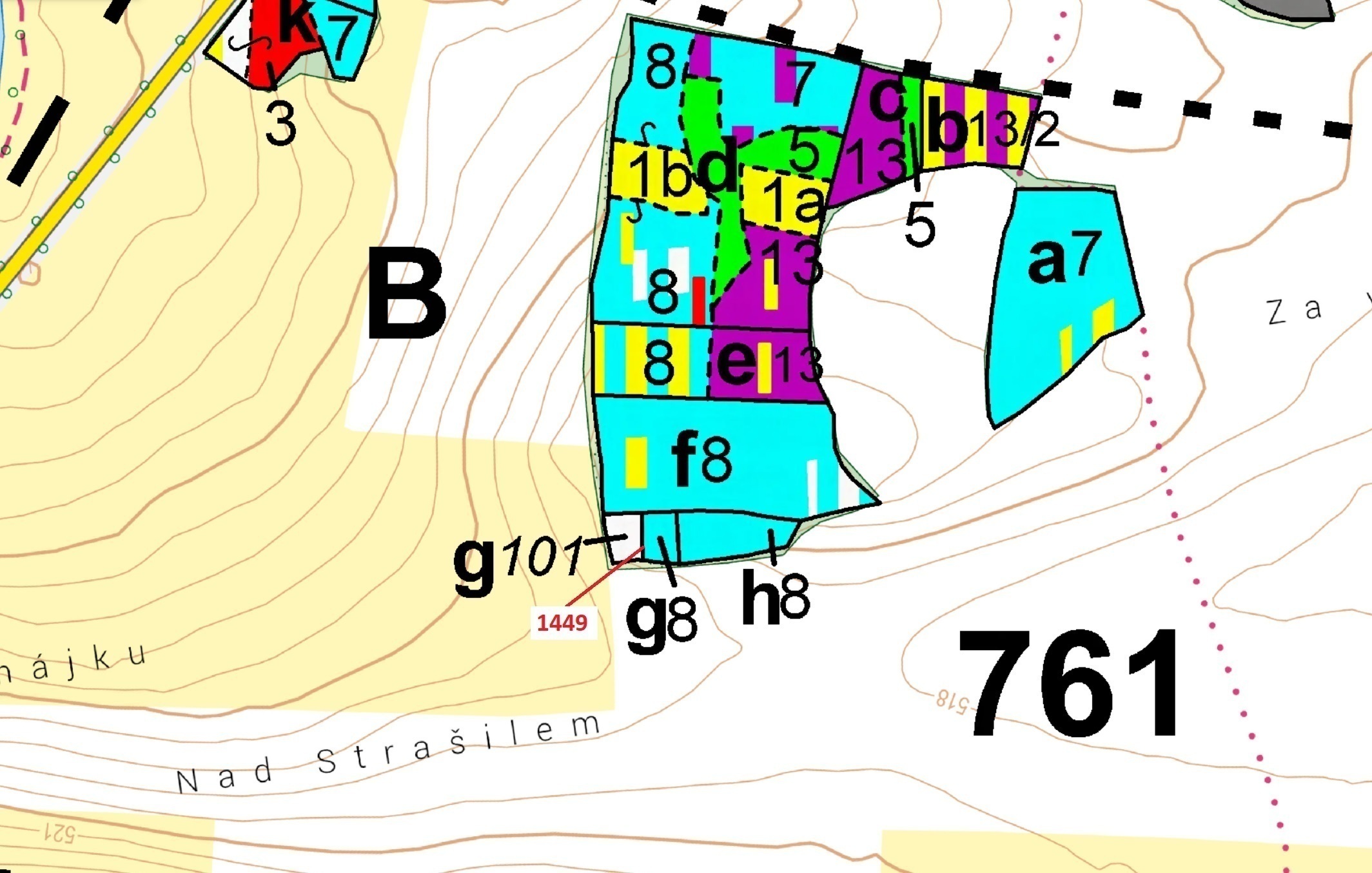 Lesní pozemek o výměře 638 m2, parcelní číslo 1449, podíl 1/1, katastrální území Bezděkov u Kasejovic, obec Hradiště, obec s rozšířenou působností Nepomuk, okres Plzeň-jih, Plzeňský kraj. Po těžbě.