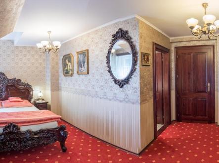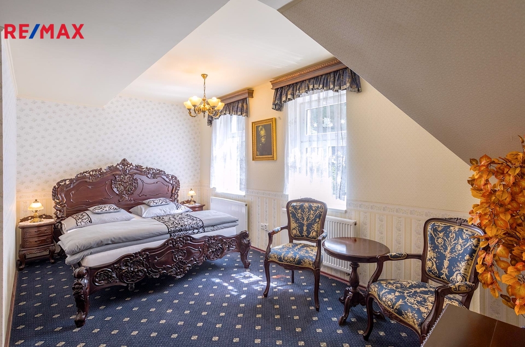 Rodinné sídlo /aprtmány: Prodej exkluzivního butikového hotelu Připravili jsme pro Vás jedinečnou příležitost investovat do luxusního hotelu v atraktivní lokalitě, který je možné užívat jako rodinné sídlo, firemní nemovitost pro rekreaci či rozdělit na apartmány. Nádherný, zařízený hotel s nadstandardním vybavením nejvyšší kvality je právě na prodej. Hotel Hawel v samém srdci Hřenska, okolo nějž pulzují davy turistů mířících do národního parku České Švýcarsko na oblíbená výletní místa jako je Pravčická brána, Stará Plynárna, Labský kaňon, Soutěska Kamenice, skalní most Bastei, Tiské stěny, Stolové hory a další památky, je připraven ihned uvítat Vaše nové hosty. Tento jedinečný hotel prošel v roce 2013 kompletní rekonstrukcí a prodává se s parkovištěm pro 9 aut na vlastním pozemku. Další místa pro parkování jsou k dispozici na obecním parkovišti. Restaurace v přízemí spolu se zimní zahradou nabízí místo pro 88 hostů. Je zařízena kvalitními dubovými stoly s židlemi, dobovými obrazy a dekoracemi, které hosty jistě zaujmou. Ve vytápěné zimní zahradě je začleněna skála, v níž je hotel usazen, což dotváří jedinečnou atmosféru tohoto místa. Hosté se mohou ubytovat v 16 pokojích ve třetím a čtvrtém patře hotelu v následující struktuře: 11 reprezentativních pokojů s nábytkem z mahagonu, z nichž každý je sladěný s velkoryse řešenou koupelnou s italskou dlažbou. Pokoje jsou vybaveny minibary zabudovanými do mahagonových stolů, luxusní manželskou postelí a velkou šatní skříní z mahagonu s vyřezávanými motivy; zbývajících 5 menších pokojů ve sníženém podkroví je k dispozici pro méně náročné hosty. Druhé patro zabírá velkoryse řešený klimatizovaný byt 4+1 s terasou a balkonem, o celkové výměře 159 m2. Tvoří jej dvě ložnice, obývací pokoj v zámeckém stylu s krbem a terasou, luxusní pracovna se samostatnou toaletou, kuchyně, tři komory, šatna a dvě koupelny s toaletou. Technologie hotelu: na chodbách je instalován hudební systém, ohřev vody v hotelu zajišťuje 6 bojlerů, každý o objemu 300 litrů. Elektrokotel napojený na ústřední systém vytápění je ovládán centrálně na dálku přes počítač a topení je tak nastavitelné ve všech pokojích zvlášť dle potřeby. V hotelu je bezpečnostní systém, který je možné napojit na pult centrální ochrany. V celém hotelu je k dispozici internet. Více detailů o tomto hotelu Vám rádi sdělíme na požádání, proto nás neváhejte kontaktovat a zamluvit si prohlídku. Prodávající si vyhrazuje právo vybrat nejlepší nabídku podle jím zvolených kritérií.