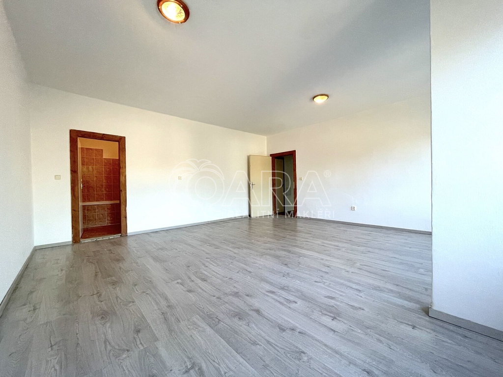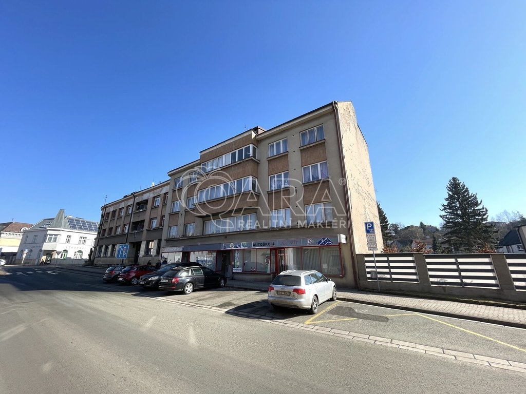 Dobrý den, nabízím k pronájmu prostorný byt 1+1 o velikosti 64 m² v cihlovém domě v Husově ulici v Hronově. Byt se nachází ve druhém patře (3. nadzemním podlaží) a je orientován na východ do zahrady s altánem, kterou mohou nájemníci využívat. K bytu náleží sklep o velikosti 5 m². Dispozice bytu zahrnuje chodbu, prostorný pokoj a samostatnou kuchyň s linkou, elektrickým sporákem + spíž. Koupelna přístupná z pokoje je vybavena vanou, toaleta je samostatná. Vytápění zajišťuje plynový kotel, okna jsou dřevěná. Parkování je možné přímo u domu nebo lze pronajmout také kúlnu (750,- Kč / měsíc) pro Vaše vozidlo nebo jako další úložný prostor. Dům se nachází v centru obce, proto obchody, škola, lékárna a další vybavenost, které město Hronov nabízí máte doslova za rohem. Pokud sháníte bydlení také s dětmi, možná uvítáte také dětskou skupinku MM Myšička, která se nachází hned ve vedlejším domě. Vytápění centrálním plynovým kotlem – 2 700,- Kč/měsíc Voda – 600,- Kč/měsíc - přibližně dvě osoby Společné prostory (svícení, úklid) – 300,- Kč/měsíc Domovník (obsluha kotelny a zahrady) – 170,- Kč/měsíc Elektřinu si nájemník přepisuje na sebe Nájemné činí 8 500,- Kč / měsíc. Vratná kauce 17 000,- Kč. Jednorázový poplatek za zprostředkování 5 000,- Kč. Byt je vhodný maximálně pro 2 osoby, volný k nastěhování. Rád vám byt ukážu, budu se těšit.