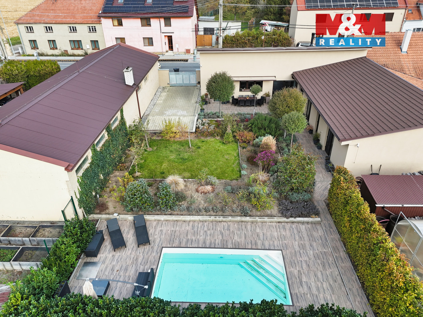 Exkluzivně nabízíme k prodeji prostorný rodinný dům 5kk v obci Hrubčice, vzdálené jen pár minut od Prostějova a Olomouce. Dům je z roku 2020 po rozsáhlé rekonstrukci, kdy byl vystaven téměř celý znovu. Součástí moderního vybavení je podlahové vytápění s termostaty v každé místnosti, dva elektrokotle, kanadská krbová kamna, nová kuchyňská linka včetně spotřebičů a klimatizační jednotky. V domě se nachází dvě koupelny, technická místnost a pokoje orientované do zahrady. Samozřejmostí jsou elektrické markýzy a vlastní kopaná studna. Dům je zděný, se střechou pokrytou šindelem. Na pozemku o rozloze 697 m² se nachází relaxační část s bazénem o velikosti 6×3 m se slanou vodou a kompletní technologií, sklad na nářadí a dva skleníky. Parkování je zajištěno pro dvě auta, s možností budoucího zastřešení a vjezd je ovládán dálkově. Nemovitost se prodává včetně vybavení. Hrubčice nabízejí klidné bydlení s vynikající dostupností. Pro více informací kontaktujte makléře.