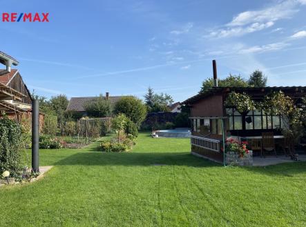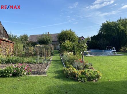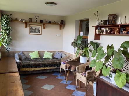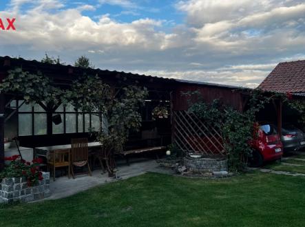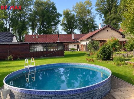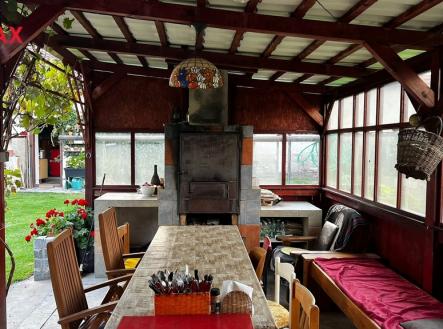 Nabízíme vám k prodeji přízemní, atypicky řešený dům přímo v centru obce Hrubý Jeseník v okrese Nymburk. Dům samotný je umístěn na přední hranici pozemku, odkud je i hlavní vstup do chodby, ze které dvoukřídlými dveřmi vstoupíte do haly se vstupy do ostatních místností a prostor domu - ložnice (18 m2), otevřené šatny, koupelny s vanou (13 m2), WC a dětského pokoje (19 m2). Na halu navazuje chodba, na jejímž konci je výstup do verandy - zimní zahrady (22 m2) a následuje otevřený prostor rozdělený na obývák s jídelním koutem (33 m2) a barem z lícových cihel, který odděluje vlastní kuchyň (20 m2) s litinovými krbovými kamny s varnou deskou a elektrickým sporákem s troubou. Za kuchyní navazuje další obytná část, nyní sloužící jako vejminek. Jedná se o pokojík 15 m2, ze kterého malou šatnou procházíte do koupelny s WC a sprchovým koutem. Ze vstupní haly je rovněž výstup do tří, na sobě navazujících hospodářských (špajzu) a technických místností (sklad a kotelna), kde z prostředního skladu vedou nové dřevěné schody na prostornou půdu, kde by byla možnost vybudování dalšího obytného prostoru. Dům je mimo sezónu vytápěn litinovými kamny a kotlem na dřevo, ohřev vody zajišťují elektrické bojlery. Dispozice celého domu nabízí možnost bezbariérového využití a také možnost přestavby na dvougenerační bydlení. Vraty, navazujícími na pravou část domu se vchází na dvůr zakončený krytým stáním pro dva vozy a pergolou s krbem a posezením s venkovní kuchyní, která je plně vybavená a sezónně velmi využívána. Plynule navazující zahrada je rozdělena na odpočinkovou část s bazénem a část užitkovou ukončenou skleníkem. Celý pozemek, i když je obklopen dalšími parcelami, má druhý samostatný přístup vraty v zadní části, což případně umožnuje rozdělení zahrady na další stavební pozemek. Jak příjemný je dům a jaké jsou možnosti jeho využití v jarním a letním období, vidíte ve fotodokumentaci. V obci je základní občanská vybavenost, včetně MŠ a prvního stupně ZŠ. Veškerá další občanská vybavenost je v Nymburku vzdáleném 10 km. Hrubý Jeseník je autem v dobré dostupnosti Prahy (cca 50 km) přes D10 nebo D11, na obě dálnice cca 25 km. Vlaková stanice je v obci Oskořínek ve vzdálenosti 1 km.
