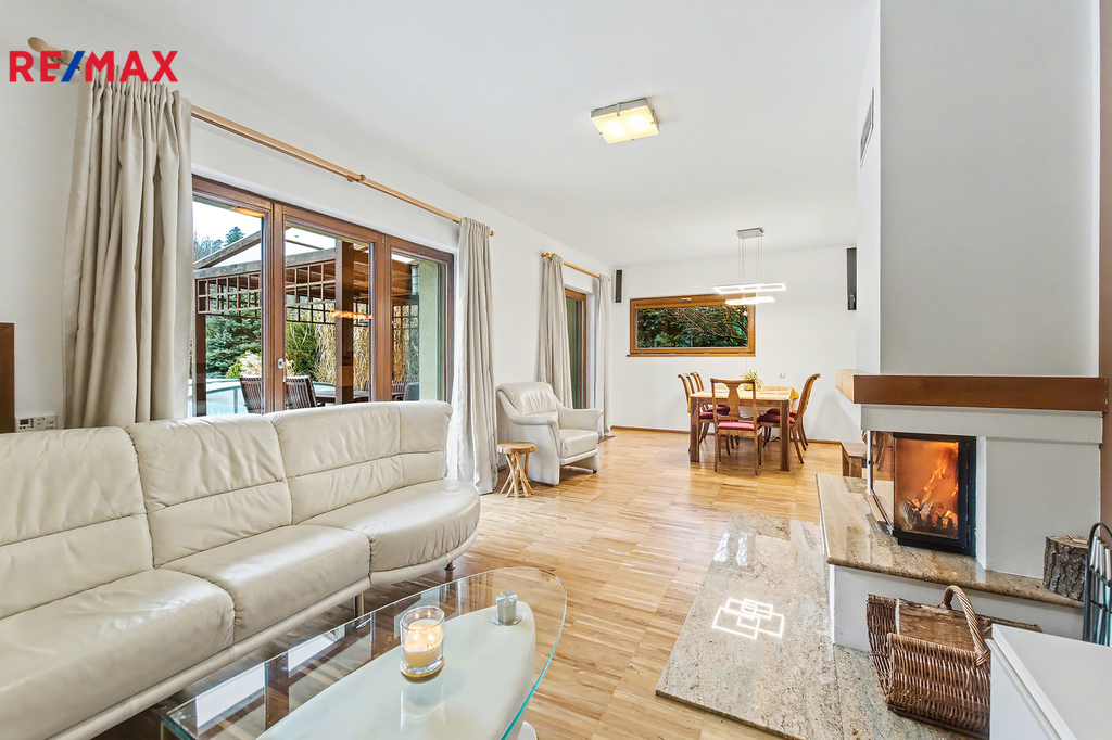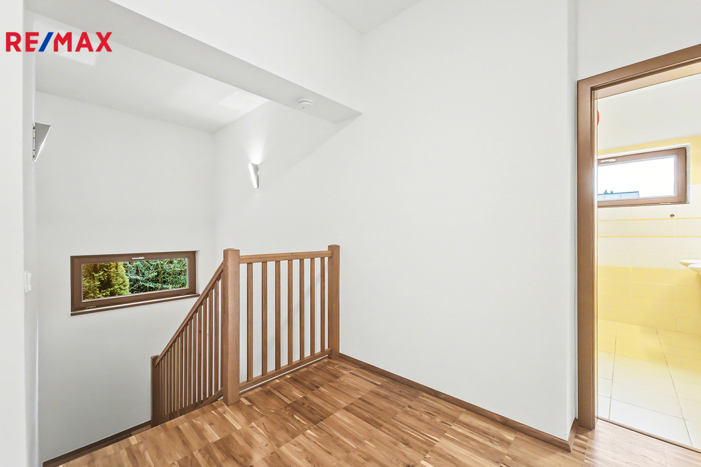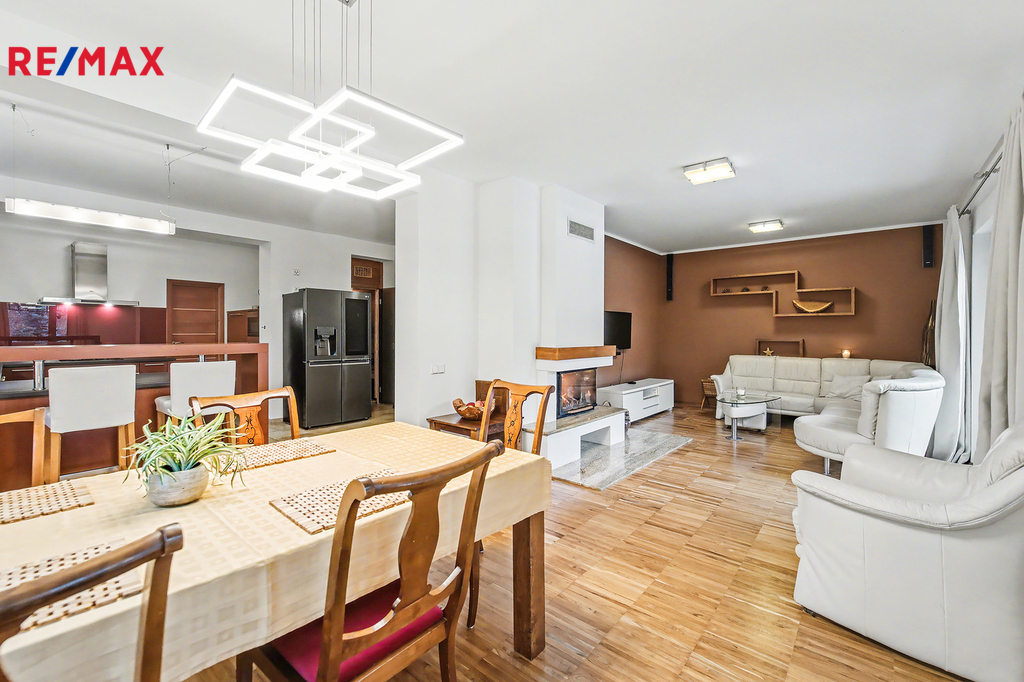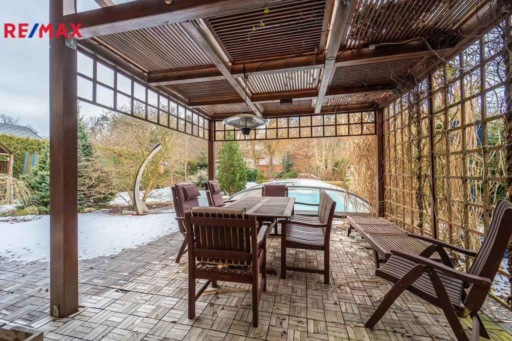 Hledáte místo, kde vaše děti vyrostou v sousedství přírody, a vy přitom neztratíte kvalitní spojení s Prahou? Vítejte v Hrusicích, malebné obci v Posázaví a rodišti Josefa Lady. Exkluzivně nabízíme nadstandardní rodinný dům dispozice 5+1 (220 m²), který byl navržen s důrazem na prostor, společně strávený čas i soukromí jednotlivých členů rodiny. Proč si tento dům vaše rodina zamiluje? • Společné chvíle u krbu a na terase: Vaše rodina bude trávit společné chvíle u jídelního stolu v obývacím pokoji s krbem. Za hezkého počasí si můžete obytný prostor rozšířit o navazující terasu s posezením pod pergolou. • Zahrada jako z pohádky: Na rozlehlé, vzrostlé zahradě čeká na děti herní koutek, tajná zákoutí pod stromy a večerní opékání buřtů u ohniště. • Koupací sezóna od jara do podzimu: Bazén se slanou vodou a protiproudem je díky zastřešení a tepelnému čerpadlu v provozu od jara do podzimu. Zatímco si děti hrají ve vodě, vy můžete odpočívat vedle bazénu na terase pod pergolou. • Domácí wellness: Po náročném dni v práci můžete relaxovat nebo po zimní procházce vás zahřeje finská sauna pro celou rodinu. • Bezpečí a klid: Dům stojí na konci klidné ulice. Žádný provoz, jen ticho a šumění blízkého lesa a potůčku. Dům je navíc vybaven zabezpečovacím systémem a elektrickými roletami pro váš klidný spánek. Dům je rozdělen na klidovou a společenskou zónu: • Horní podlaží (vstupní): Tři prostorné ložnice, z nichž každá má vstup na balkon s výhledem do zahrady. Hlavní ložnice disponuje vlastní koupelnou a šatnou. Dětské pokoje mají vlastní koupelnu – rána bez front v koupelně jsou zaručena. • Dolní podlaží (zahradní): Srdcem domu je velkorysý obývací pokoj s jídelnou a kuchyní, odkud plynule vyjdete na terasu a k bazénu. Najdete zde i pracovnu (ideální pro home office) a zmíněnou saunu. Kvalita a technologie: Dům je postaven z poctivých materiálů (zdivo Porotherm, zateplení, dřevěná okna s trojskly, podlahy z masivního dřeva). Vytápění plynovým kondenzačního kotlem přes podlahové radiátory v pokojích a podlahové topení v kuchyni a koupelnách. Zavlažování zahrady z vlastní vrtané studny a jímky na dešťovou vodu. Prostorná dvougaráž a další 3 parkovací místa na pozemku. Hrusice a sousední Senohraby jsou rájem pro aktivní rodiny. • Vše při ruce: Školka, škola i zdravotní středisko jsou v docházkové vzdálenosti. • Volný čas: Cyklostezky a trasy "Mikešovy cesty" začínají hned u domu. K řece Sázavě dojedete na kole za 5 minut. V zimě najdete upravené běžkařské stopy 1,5 km od domu nebo zajedete na sjezdovku do 6 km vzdáleného lyžařského areálu Šibeniční vrch. • Dostupnost: Vlakem ze Senohrab (10 min pěšky od domu) jste v centru Prahy za 40 minut. Autem na dálnici D1 za pár minut. • Restaurace a další služby: Pokud rádi navštěvujete restaurace, najdete v okolí různé podniky a dále hotel SEN se skvělým saunovým světem. Přijďte se podívat na místo, které se stane šťastným domovem pro Vaši rodinu. Těšíme se na vás na prohlídce!