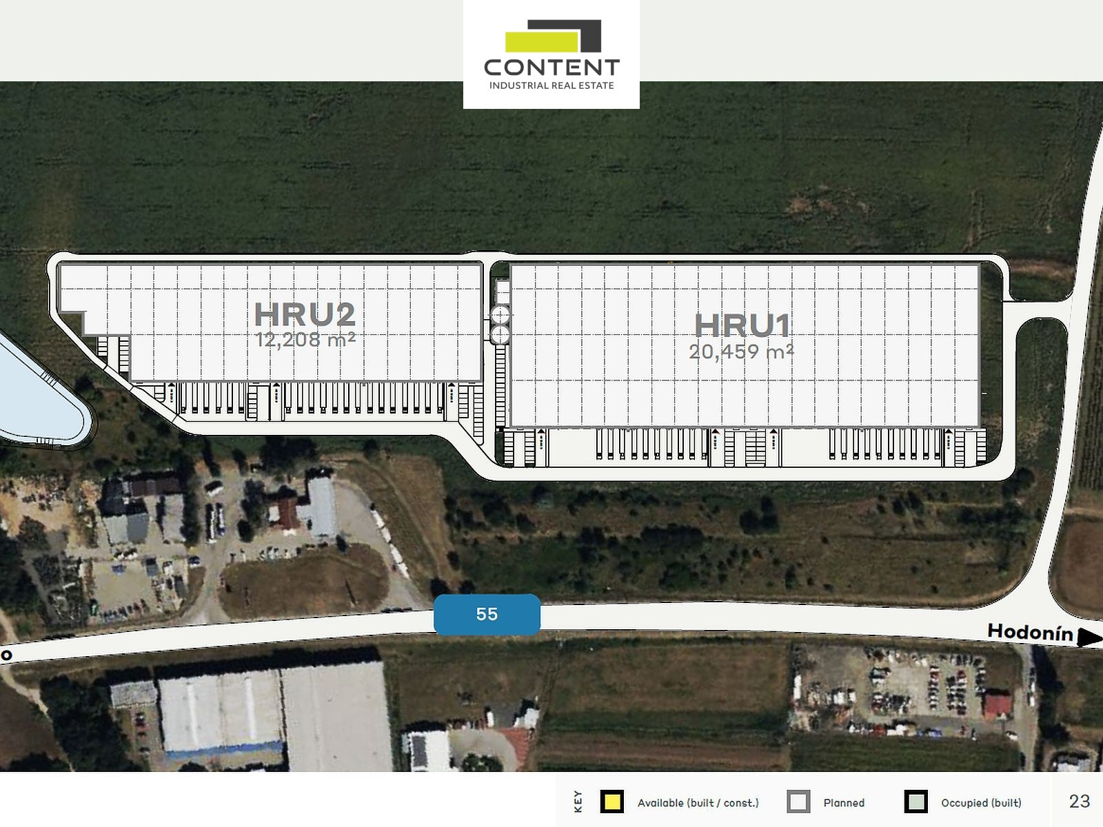 Pronájem skladu, výrobních prostor Hrušky, okres Břeclav. V zastoupení majitele a bez provize nabízíme industriální prostory pro sklad nebo výrobu 5000 m², v blízkosti dálnice D2 exit 48. Prostory se nachází v nově vznikajícím komerčním areálu. - dostupnost na vyžádání (budova HRU2) - možnost pronájmu 5000 m² až 12208 m² v rámci stejné budovy - kanceláře, showroom a zázemí budou dobudovány dle požadavku - světlá výška prostor 14 m - bezprašné, vysoko-zátěžové podlahy s nosností minimálně 5 t/m² - kryté rampy i vjezdy v úrovni vozovky - denní světlo dle norem, vytápění plynem - příjezd a parkování osobní i nákladní dopravy bezproblémové - v areálu k dispozici další prostory - až 20459 m² Cena nájmu bude stanovena po osobní návštěvě, dle dalších podmínek smlouvy. Fotografie jsou pouze ilustrativní. Pro více informací nás kontaktujte.