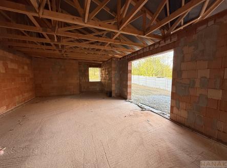 Prodej hrubé stavby moderního domu v Hrušovanech nad Jevišovkou.