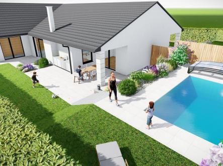Exkluzivně nabízíme ke koupi zděnou novostavbu moderního jednopodlažního rodinného domu 4+kk se zahradou v klidné části Hrušovan nad Jevišovkou. Dům je aktuálně ve fázi hrubé stavby a bude dokončen na klíč. Hlavní informace • Dispozice 4+kk • Pozemek: 541 m² • Zastavěná plocha: cca 154 m² • Užitná plocha: cca 129 m² • Zahrada: cca 387 m² • Vlastní parkování + předzahrádka před domem Dispozice domu: • Zádveří: 7,8 m² • Technická místnost: 4,6 m² • WC: 2,7 m² • Koupelna: 5,7 m² • Spíž: 1,2 m² • Obývací pokoj + kuchyně: 66,9 m² • Ložnice: 15,4 m² • Pokoj: 12,4 m² • Pokoj: 12,4 m² Velkorysý obývací prostor o rozloze téměř 67 m² nabízí pohodlí a díky velkým francouzským oknům i dostatek světla a přímý vstup na terasu se zahradou. Vlastní pokoje jsou přístupné přímo z centrálního obývacího pokoje a hlavní ložnice je navržena rovněž s francouzským oknem s přímým vstupem na terasu a zahradu. Výhled z domu na Pálavu či světlo zapadajícího slunce na dům nebo zahradu jsou příslibem nezapomenutelných okamžiků, které zde můžete prožít se svou rodinou. Konstrukční provedení: Dům je založen na betonových základových pasech. Obvodové zdivo i příčky jsou provedeny z keramických cihelných bloků Heluz, což zaručuje kvalitní a dlouhodobě spolehlivou konstrukci. Střecha z keramické krytiny. Součástí projektu je také venkovní terasa orientovaná do zahrady. Lokalita: Nemovitost je situována v nové, žádané části Hrušovan nad Jevišovkou. Místo nabízí výbornou občanskou vybavenost, sousedství nových domů a rychlý přístup k přírodě. Perfektní volba pro rodiny i pro ty, kdo hledají pohodové a moderní bydlení.