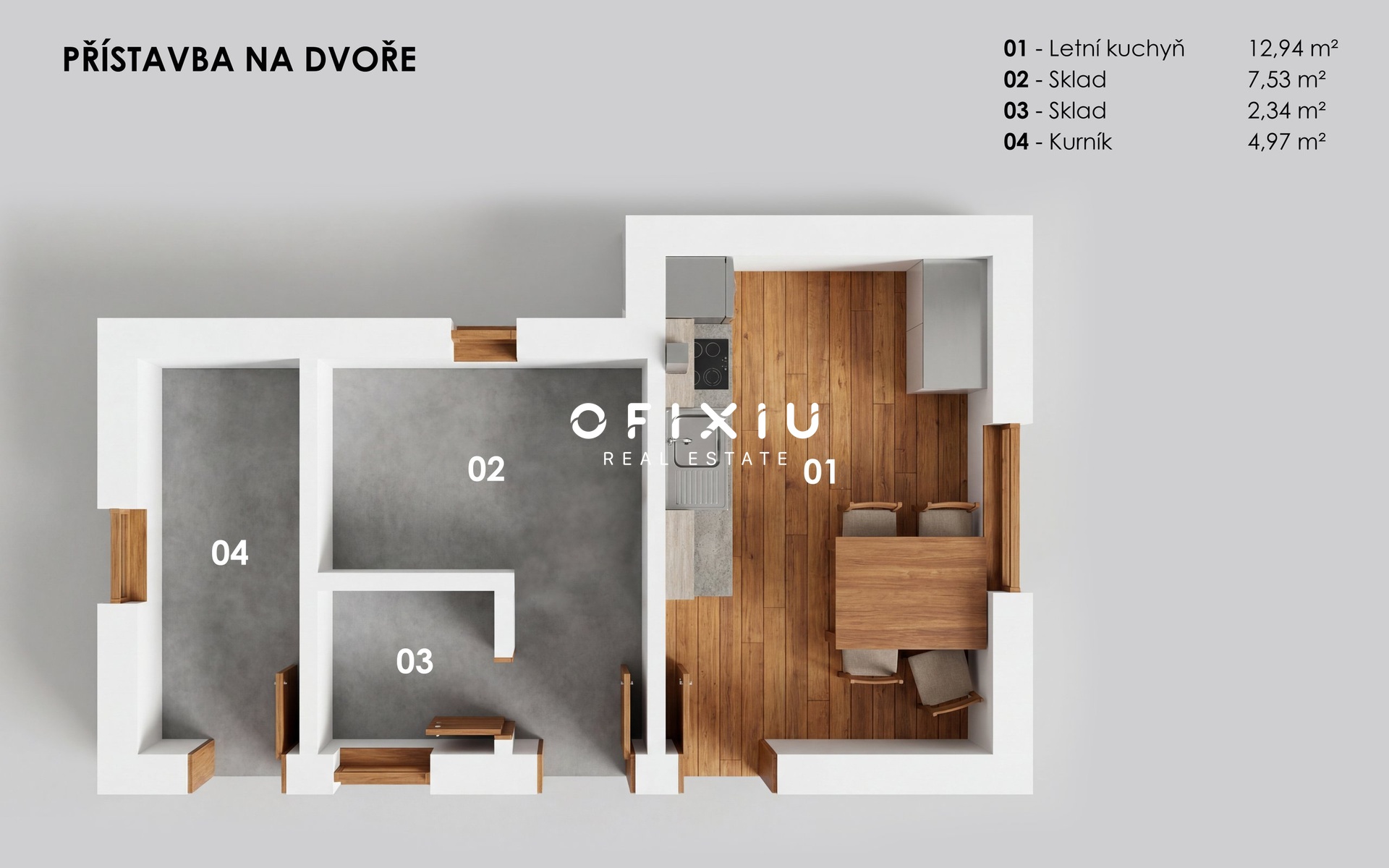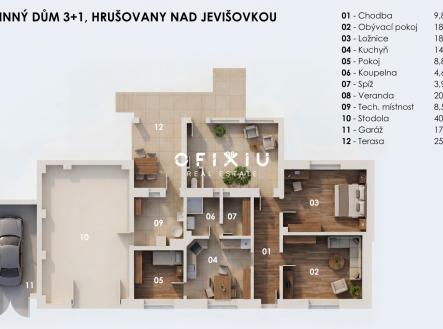 Nabízíme k prodeji samostatně stojící, přízemní rodinný dům o dispozici 3+1 s garáží, vinným sklepem a prostornou zahradou v obci Hrušovany nad Jevišovkou. Dům je zděný, v dobrém technickém stavu a vhodný k okamžitému nastěhování bez nutnosti větších investic. Dispozici domu tvoří vstupní chodba, kuchyně, obývací pokoj, dvě ložnice, jídelna, koupelna a samostatné WC. Součástí nemovitosti je také technická místnost, obytná veranda a půdní prostor s možností budoucího rozšíření obytné části. Dům je částečně podsklepen – sklepní prostory zahrnují dva klasické sklepy a samostatný vinný sklep o celkové výměře přibližně 24 m², který nabízí ideální zázemí pro skladování vína či potravin. Na uzavřený dvůr navazuje samostatná přístavba, která rozšiřuje užitné zázemí domu. Nachází se zde letní kuchyně o velikosti cca 13 m², dále skladovací prostory a menší hospodářské zázemí, vhodné pro uskladnění, hobby využití nebo chov drobného zvířectva. Nemovitost je napojena na všechny inženýrské sítě (elektřina, voda, plyn, kanalizace). Vytápění zajišťuje plynový kotel, ohřev vody elektrický bojler napojený na střešní fotovoltaiku. K domu náleží garáž pro jedno vozidlo, uzavřený dvůr se studnou a hospodářská budova s letní kuchyní, dvěmi úložnými místnostmi a slepičárna. Zahrada o výměře 1 004 m² je orientována na jih. Celková plocha pozemku činí 1 713 m². Dům se nachází v klidné části obce s dobrou dostupností – Znojmo cca 30 minut, Brno cca 40 minut, Rakousko/Vídeň přibližně hodinu jízdy.