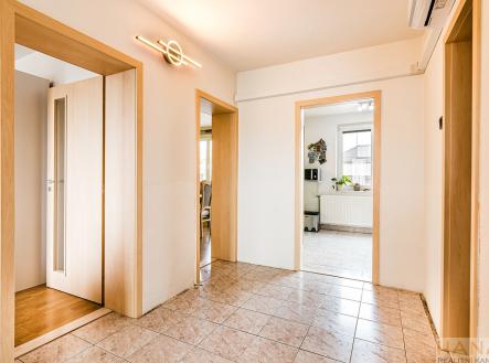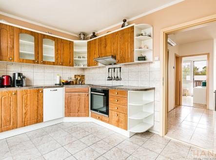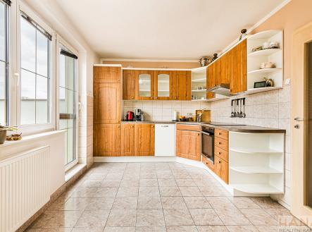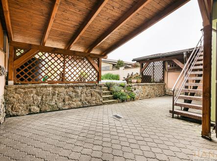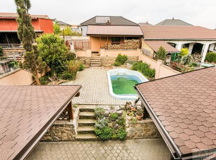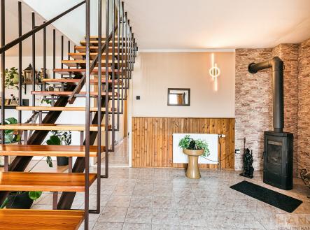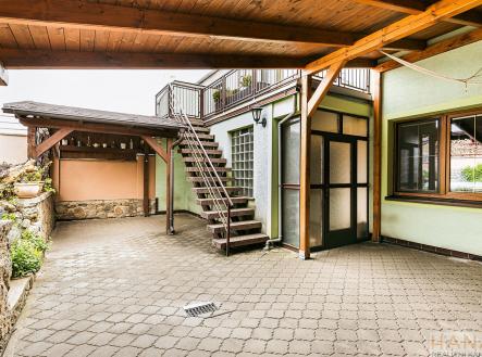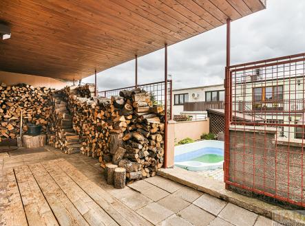 Nabízíme k prodeji velmi dobře dispozičně řešený řadový rodinný dům o užitné ploše 259,75 m², nacházející se v klidné části města Hrušovany nad Jevišovkou, ul. Větrná. Ideální volba pro vícegenerační bydlení, podnikání z domova, nebo komfortní zázemí pro větší rodinu. Před domem je předzahrádka s nájezdem do garáže a možností parkování. Za domem uzavřený dvorek s terasou a pergolou, bazénem a vedlejší stavbou kůlny s dřevníkem. Dispozice a prostory: Suterén (81,50 m²): Chodba + hala – 16,6 m², Kotelna – 6,2 m², Sklad 1 – 12,5 m², Sklad 2 – 5,7 m², Sklad 3 – 15,5 m², Garáž – 21,5 m² 1. nadzemní podlaží (90,5 m²): Veranda – 4,9 m², Hala – 14,5 m², WC – 2,0 m², Obývací pokoj – 21,3 m², Chodba – 5,8 m², Ložnice – 19,7 m², Koupelna – 5,5 m², Šatna – 7,7 m², Zadní veranda – 9,1 m² 2. nadzemní podlaží (87,75 m²): Hala – 6,3 m², Pracovna – 11,75 m², Obývací pokoj – 20,1 m², WC – 1,8 m², Koupelna – 3,2 m², Kuchyň – 12,0 m², Jídelna – 16,8 m², Pokoj – 9,5 m², Lodžie – 9,8 m² Celková podlahová plocha: 259,75 m² Celková plocha pozemků: 357 m² (zastavěná plocha a dvě přilehlé parcely) Technický stav a vybavení: Dum je po rekonstrukci ve velmi dobrém a udržovaném stavu. • Zateplená fasáda, plastová okna (dvojskla i trojskla) • Plochá střecha s plechovou krytinou • Topení: ústřední s deskovými radiátory, navíc lokální topidlo na tuhá paliva • Ohřev vody: elektrický bojler • Podlahy: keramická dlažba, plovoucí podlahy • Kuchyň s vestavěnými spotřebiči • V koupelnách: vana, umyvadla, WC (kombi i vestavěné) • Napojeno na elektřinu, vodovod, kanalizaci, plyn Lokalita: Dům se nachází na severozápadním okraji města Hrušovany nad Jevišovkou, pouze 6 km od Znojma. Město má plnou občanskou vybavenost: škola, školka, lékárna, pošta, obchod, a klidnou atmosféru ideální pro rodinné bydlení. Pro více informací a sjednání prohlídky nás neváhejte kontaktovat. PENB je teprve zpracováván, proto uvádíme hodnotu G, dům má zateplenou fasádu a plastová okna.
