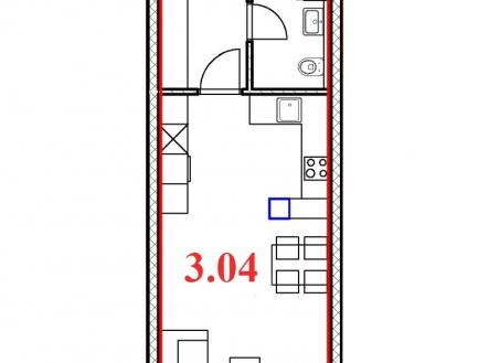 Ve výhradním zastoupení investore nabízíme k prodeji prostorný apartmán 1+kk v nově budovaném polyfunkčním objektu, který tvoří novou dominantu na nároží významných ulic. Roháček Humpolec poskytuje ideální podmínky pro komfortní užívání s důrazem na energetickou úspornost a minimalizaci provozních nákladů. Projekt Roháček nabízí velkou flexibilitu v úpravách a přizpůsobeních dle specifických přání klientů. Možnost spojení jednotek umožňuje vytvoření prostornějších apartmánů či komerčních jednotek, které lze využít třeba jako apartmány, studia, kanceláře, ordinace či specializované vzorkovny. Možnost přikoupení parkovacího stání a sklepní kóje na patře. Strategická poloha v rozvíjejícím se Humpolci, nedaleko průmyslových center jako je CTP Park Humpolec a Agrostroj Pelhřimov, činí z projektu Roháček atraktivní investiční možnost s vysokým potenciálem pro nadprůměrné zhodnocení. Dispozice: vstupní chodba (7,9 m²), pokoj s kuchyňským koutem (26,2 m²), koupelna s WC (3,5 m²), komora (2,2 m²)