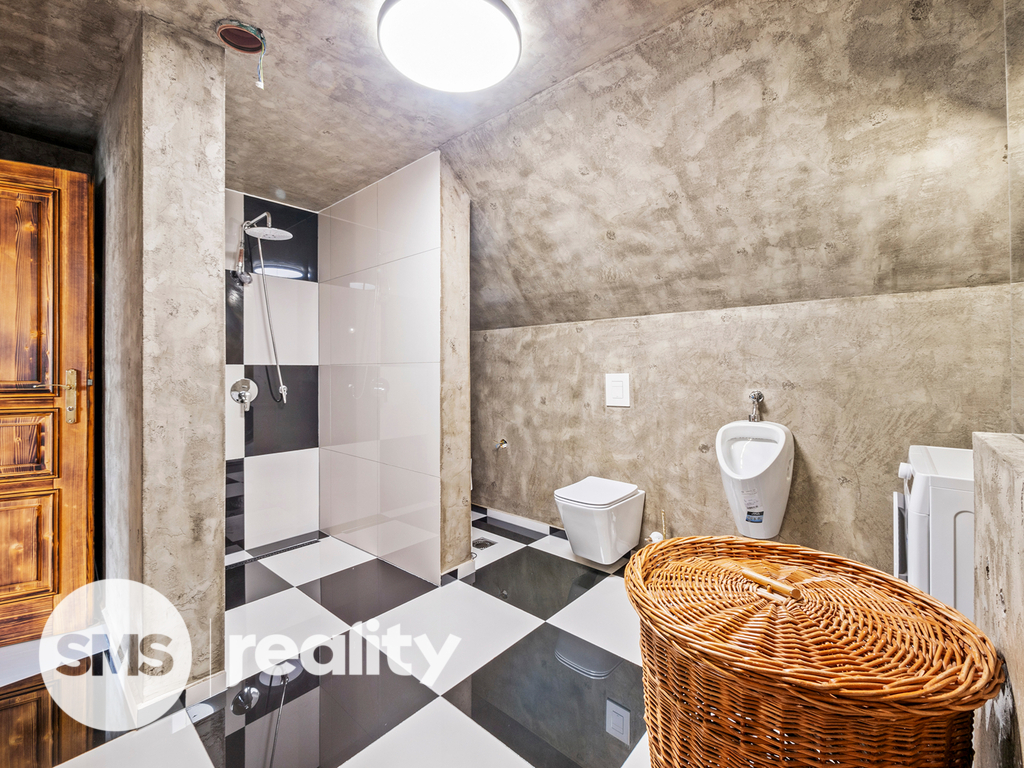 Nabízíme k dlouhodobému pronájmu naprosto výjimečný mezonetový byt o podlahové ploše 98 m², nacházející se v 1. patře rodinného domu v jedné z nejžádanějších lokalit Humpolce. Tento plně vybavený byt zaujme nejen svou dispozicí, ale především neobyčejným interiérem, který v sobě spojuje teplo přírodních materiálů a moderní industriální styl. Byt je kompletně obložen kvalitním dřevem opáleným ohněm, které mu dodává atmosféru stylového horského srubu. Dominantou obytného prostoru jsou krbová kamna, která nejen efektivně vytápí celý byt, ale vytváří i jedinečnou atmosféru domova. Koupelna je navržena v industriálním duchu s použitím velkoformátových dlaždic, černých armatur a prvků, které v kontrastu s dřevem vytvářejí vizuálně působivý a přitom funkční celek. Součástí bytu je také balkon, ideální pro odpočinek u kávy nebo večerní sklenky vína. K bytu náleží parkovací místo přímo před domem. Lokalita a okolí: Byt se nachází v klidné a lukrativní části města s nádherným výhledem na zříceninu hradu Orlík. Zároveň jste jen 5 minut pěšky od centra Humpolce, kde najdete veškerou občanskou vybavenost – obchody, restaurace, kavárny, školy i sportovní vyžití. Kombinace přírody, výhledu a dostupnosti dělá z této nabídky skutečně unikátní místo k bydlení. Shrnutí nákladů: Nájemné: 20 000 Kč / měsíc Zálohy na energie a služby: 5 000 Kč / měsíc Vratná kauce: 20 000 Kč Služby RK: 18 000 Kč Byt je k nastěhování ihned a je ideální pro pár, který hledá stylové a inspirativní bydlení s atmosférou, na kterou se nezapomíná. V případě zájmu o prohlídku nás neváhejte kontaktovat.