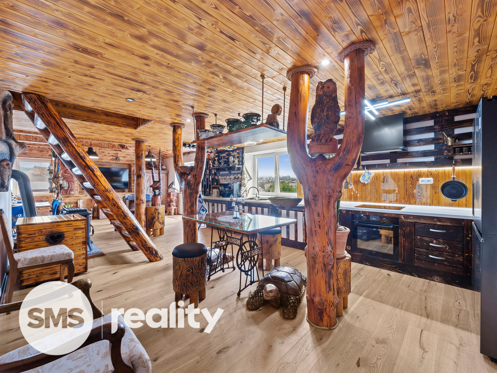 Pronájem jedinečného mezonetového bytu 2+kk ve stylu srubu, 98 m², Humpolec