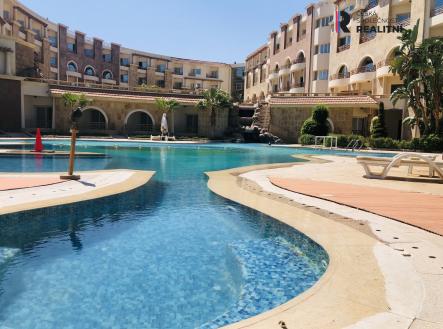 Exkluzivní oáza u moře: Luxusní byt 2kk s panoramatickým výhledem a dvěma bazény – Hurghada! Představte si život, kde slunce, moře a relaxace jsou na denním pořádku! Nabízíme jedinečnou příležitost vlastnit kompletně zařízený byt 2kk (70 m²) v přízemí prestižního rezortu, který vás okouzlí. Z vašeho nového domova si užijete přímý výhled na třpytivý bazén a zároveň částěčný, uklidňující výhled na azurové moře. Tento apartmán není jen bydlení, je to vstupenka do světa pohodlí a nekonečných možností! Proč je tento apartmán vaší nejlepší volbou? * Dva soukromé bazény: Okamžité osvěžení na dosah ruky, kdykoliv si zamanete. * Kompletně zařízený: Stačí přijet s kufry a začít si užívat. Vše je připraveno pro váš komfort. * Perfektní poloha: Jen 10 minut jízdy od mezinárodního letiště Hurghada. Bezstarostné cestování zaručeno! * Snadná dostupnost El Gouny: Do ikonické El Gouny, kde naleznete golfová hřiště, luxusní mariny a gurmánské restaurace, dojedete za pouhých 10 minut.* Kompletní občanská vybavenost: V bezprostřední blízkosti najdete restaurace, obchody, poštu, banky, školy i školky – vše, co potřebujete pro pohodlný život. * Investiční potenciál s plným servisem: Resort nabízí správcovské služby a v případě zájmu o pronájem se postarají o kompletní správu a zajištění dalších pronájmů. Váš majetek se sám zaplatí!