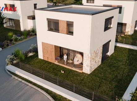 Nízkonákladová novostavba na klíč se zahradou, 2 park. stáními a terasou v obci Hůry u Č. Budějovic