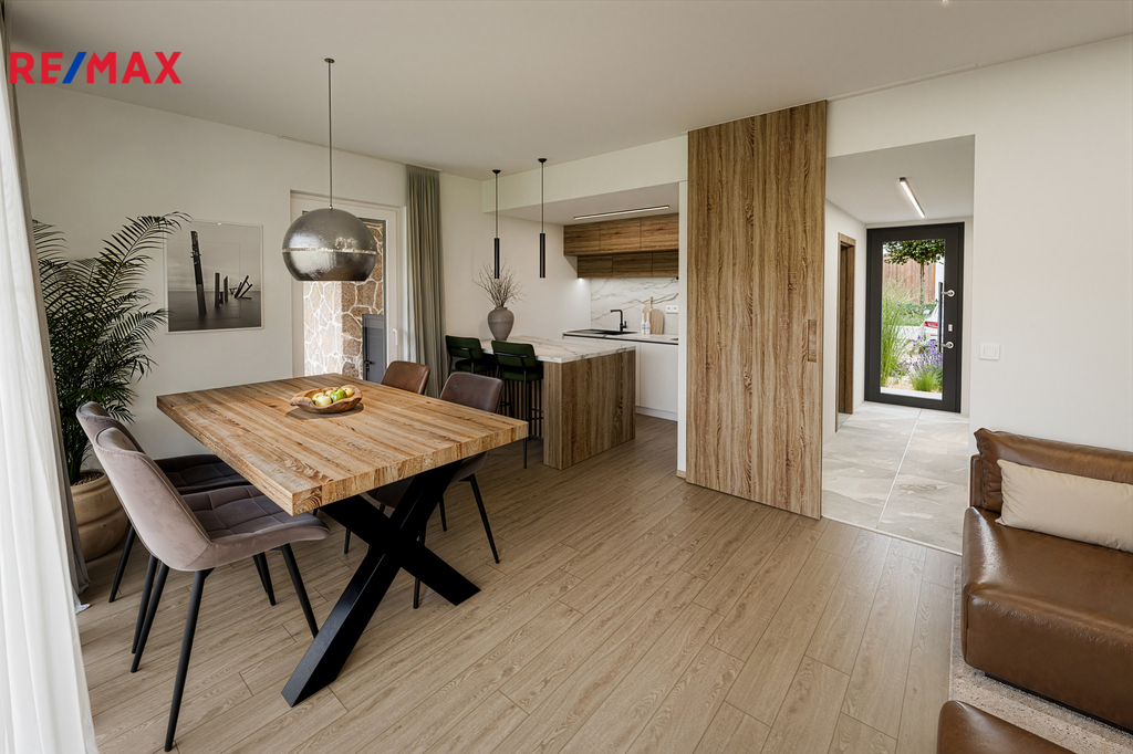 Nabízíme k prodeji novostavbu rodinného domu řešenou jako moderní dřevostavba na klíč. Objekt je navržen s důrazem na energetickou efektivitu, racionální dispoziční řešení a nízké provozní náklady. Dům je napojen na elektrickou síť, disponuje dvěma parkovacími stáními, z toho jedním krytým, a plnohodnotným technickým zázemím. Součástí je příprava na instalaci fotovoltaické elektrárny. Kryté parkovací stání je vybaveno třífázovou zásuvkou. Interiér je možné dokončit dle standardů developera. Podlahová plocha domu činí 95,1 m², dispozice je řešena jako 4+kk. V přízemí se nachází vstupní zádveří, technická místnost určená pro umístění technologií domu, samostatné WC a obytný prostor s kuchyňským koutem a jídelní částí. Z obytného prostoru je zajištěn přímý vstup na krytou vydlážděnou terasu. Osvětlení interiéru je zajištěno velkoformátovými okny. V horním podlaží jsou umístěny tři samostatné neprůchozí ložnice a koupelna. Dům splňuje parametry energetické třídy A. Vytápění je řešeno tepelným čerpadlem typu vzduch/voda. V přízemí je instalováno podlahové vytápění, v patře radiátory. Technické řešení objektu umožňuje stabilní, úsporný a dlouhodobě efektivní provoz. Příprava na připojení fotovoltaické elektrárny umožňuje další optimalizaci energetických nákladů. Dokončení interiéru probíhá dle výběru klienta v rámci standardů developera, které zahrnují podlahové krytiny, velkoformátové dlažby, interiérové dveře a dubové schodiště. V ceně je zahrnuta i moderní kuchyňský linka bez spotřebičů i kompletně vybavená koupelna s designovým podsvíceným zrcadlem. Součástí ceny je dokončený exteriér. Pozemek je oplocen svařovaným antracitovým plotem. Přední část pozemku je upravena zelení a doplněna o venkovní osvětlení se soumrakovým čidlem. Kryté parkovací stání je připraveno pro instalaci nabíjecího zařízení pro elektromobil. Nemovitost se nachází v obci Hůry, která nabízí klidné bydlení s dobrou dostupností do Českých Budějovic. Vzdálenost do centra města je přibližně 6 km, nájezd na dálnici D3 je dostupný do 5 minut jízdy. V obci je mateřská škola a zajištěna autobusová dopravní obslužnost. Předpokládaný termín dokončení a předání prvních domů je ve druhém čtvrtletí roku 2026. K dispozici je ukázkový dům v jiné lokalitě. V rámci projektu je plánována výstavba dalších tří obdobných domů s mírně odlišnou cenovou hladinou.