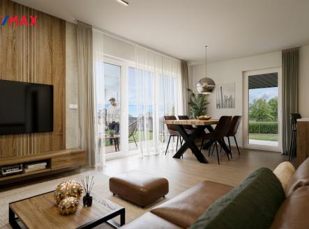 Prodej nízkonákladové novostavby se zahradou, 2 park. stáními a terasou v obci Hůry u Č. Budějovic