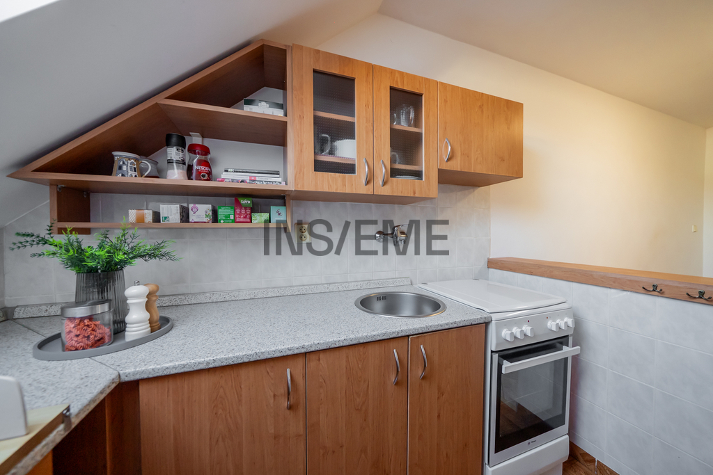 Nabízíme k prodeji kompletně vybavený rodinný dům s jednou bytovou jednotkou o dispozici 2+1, která nabízí 58 m² užitné plochy a příjemný pocit soukromí. Bytová jednotka nabízí více než jen obytný prostor. K dispozici je prostorná garáž (30 m²) a vinný sklípek (22 m²) – ideální nejen pro uskladnění vína, ale i jako praktický skladovací prostor. Skutečným srdcem tohoto místa je vzdušný obývací pokoj, který navazuje na soukromý dvorek. Ideální místo pro ranní kávu, klidné letní večery i posezení s přáteli. Dvorek přechází v travnatý porost - kaskádovitou zahradu, která vytváří klidnou zelenou oázu a přirozené propojení s přírodou, kde si každý najde svůj kousek klidu. V patře se kromě obývacího pokoje nachází také ložnice, kuchyňka a toaleta. Z chodby je navíc možný vstup na půdu, která nabízí další praktický úložný prostor. Dům stojí ve slepé ulici klidné okrajové části Hustopečí, což zajišťuje vysokou míru soukromí a minimální provoz v okolí. A to nejlepší? Přestože bydlíte v klidné části města, do centra Hustopečí, které nabízí kompletní občanskou vybavenost, dojdete pohodlně za 10 minut pěší chůze, získáte tak ideální rovnováhu mezi klidným prostředím a městským komfortem.Město je obklopené vinicemi protkanými cyklostezkami a přírodou, zároveň nabízí rychlou a pohodlnou dostupnost do Brna i Břeclavi díky nájezdu na dálnici D2. Tato nemovitost je vhodná také jako ideální investiční příležitost v podobě apartmánu ke krátkodobému pronájmu, vzhledem k turisticky vyhledávané lokalitě, ve které je umístěna. Pokud hledáte nemovitost, která spojuje praktičnost bytu, atmosféru domu, venkovní prostor a skvělou lokalitu, právě jste ji našli, proto neváhejte a domluvte si prohlídku, stěhování je možné ihned.