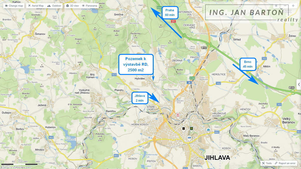 Stavební pozemek s vlastním lesíkem téměř v Jihlavě? Tady je! Nic dalšího nehledejte a postavte svůj vysněný dům právě zde! Jedinečné místo, které si zamilujete. Nabízím výjimečný stavební pozemek v Hybrálci u Jihlavy. Autem z města jste tu za pár minut, ale zvládnete to i na kole nebo pěšky, je to jen 2 kilometry. Pozemek o rozloze 2500 m² je svažitý k jihu, celý den je nádherně osluněný. Svah lze skvěle využít pro osobitý ráz budoucího domu. Hranice pozemku jsou lemovány vzrostlými stromy - převážně smrky a duby, na houby můžete zajít za dům do svého. Toto nádherné místo zaručí Vašemu domovu naprostý klid a soukromí s překrásnými výhledy do přírody i na Hybrálec. Nově schválený územní plán obce zde předpokládá výstavbu jednoho rodinného domu. Poslední dům na okraji obce, další zástavba za tímto pozemkem je územním plánem vyloučena. Inženýrské sítě u okraje pozemku, o připojení elektřiny přímo na pozemku je zažádáno, zaplaceno a bude vybudováno v létě 2026. Centrum obce včetně hybrálecké hospody je jen pár kroků za zatáčkou. Do Hybrálce zajíždí pravidelně jihlavská MHD, linka č. 8 a zastávka leží na dohled od pozemku. Do Prahy nebo Brna se po dálnici D1 dostanete cca za hodinku. Další informace rád podám na osobní prohlídce, těším se s Vámi na viděnou.
