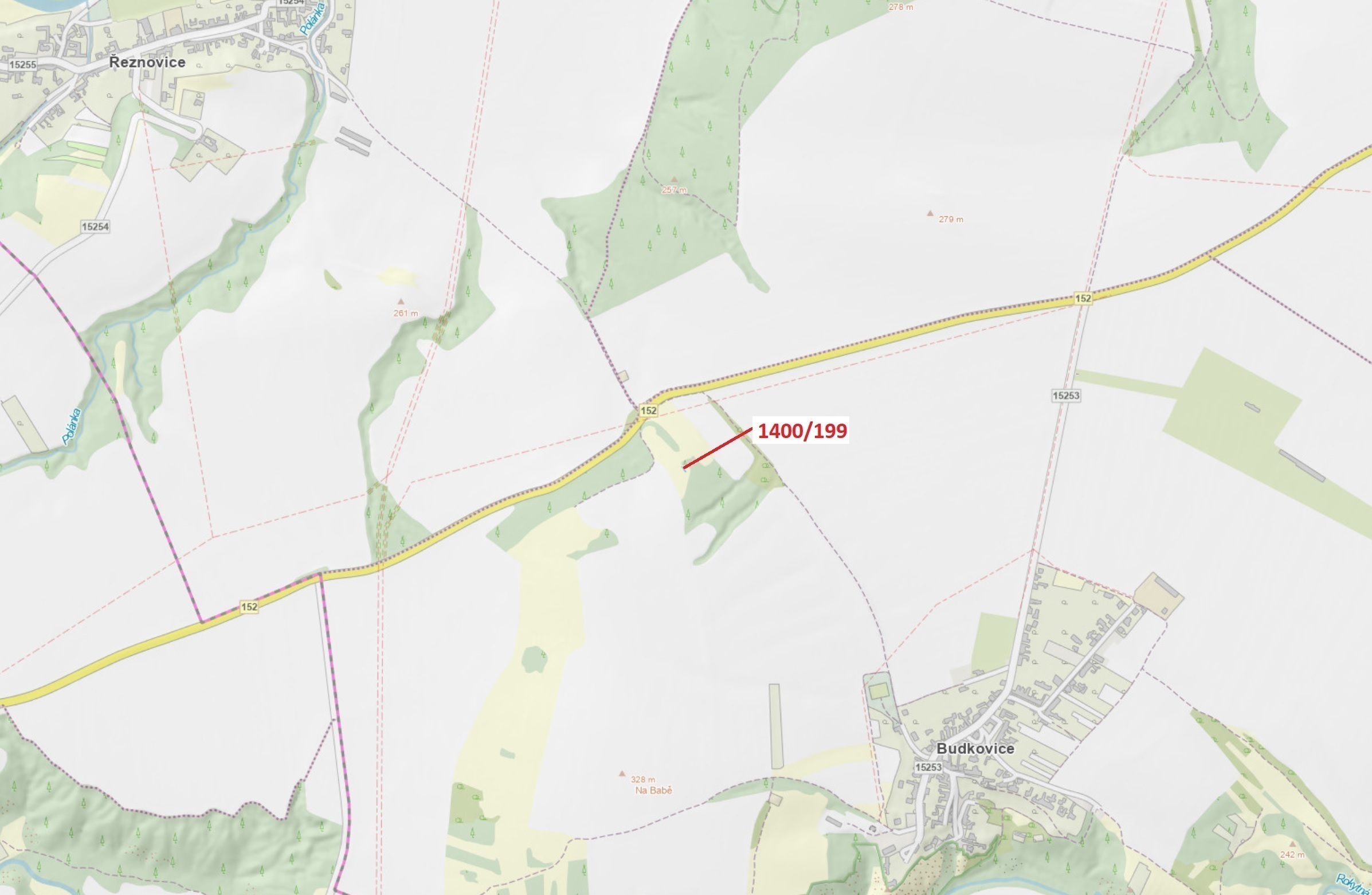 Lesní pozemek o výměře 16 m2, parcelní číslo 1400/199, podíl 1/1, katastrální území Budkovice, obec Ivančice, obec s rozšířenou působností Ivančice, okres Brno-venkov, Jihomoravský kraj.