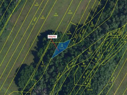 Lesní pozemek o výměře 183 m2, parcelní číslo 350/45, podíl 1/1, katastrální území Hrubšice, obec Ivančice, obec s rozšířenou působností Ivančice, okres Brno-venkov, Jihomoravský kraj.