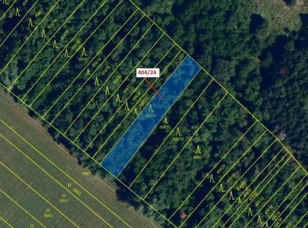 Lesní pozemek o výměře 741 m2, parcelní číslo 404/24, podíl 1/1, katastrální území Hrubšice, obec Ivančice, obec s rozšířenou působností Ivančice, okres Brno-venkov, Jihomoravský kraj.