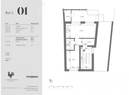 Nová rezidence U tří kohoutů v Ivančicích nabízí 5 nových bytových jednotek. Projekt U tří kohoutů nabízí stylový byt č. 1- 2+kk o ploše 45,9 m². Nachází se v centru Ivančic u Brna a nabízí moderní bydlení v příjemném prostředí. Největším benefitem je prostorný obytný prostor s kuchyňským koutem a přímým vstupem na sever orientovanou terasu o velikosti 14,8 m², která poskytuje ideální místo k relaxaci. Dispozici dále tvoří vstupní chodba s místem pro úložné prvky, ložnice a koupelna se sprchovým koutem. Komfort doplňuje skladovací kóje a možnost krytého venkovního parkování ve vnitrobloku v hodnotě 400.000,- Kč. Projekt U tří kohoutů představuje nový standard bydlení. Spojuje moderní architekturu a špičkové technologie s důrazem na udržitelnost. Nabízí širokou škálu bytů od 2+kk, 4+kk až po prostorné 5+kk s balkónem, terasou nebo zahrádkou. Moderní technologie zahrnují retenční nádrže, multisplitové jednotky (tepelná čerpadla) a přípravu pro instalaci fotovoltaických panelů, které dohromady zajišťují energetickou úspornost a zvyšují komfort bydlení. Rezidence U tří kohoutů je vhodná pro všechny generace. Vnitroblok je obklopen zelení, v blízkém okolí s dětskými hřišti, sportovišti a cyklostezkou. Okolní prostředí láká k aktivnímu odpočinku aktivitami v těsné blízkosti komplexu. Veškerá občanská vybavenost poskytuje potřebné služby, což činí z rezidence ideální místo pro moderní život. Byt bude dokončen ve vysokém standardu, jakou jsou vinylové podlahy, velkoformátové obklady, vybavení koupelen značky Laufen a Hansgrohe, bezpečnostní vstupní dveře nebo plastová okna s izolačními trojskly venkovními žaluziemi na elektrické ovládání. Podlahové elektrické vytápění a chlazení udržují ideální teplotu v každé místnosti po celý rok. U bytu č. 1 a 2 bude rekuperace, která zajišťuje kontrolované větrání a přívod čerstvého vzduchu. Ivančice je klidné a malebné město, které skvěle kombinuje blízkost k přírodě s městskou vybaveností. Je známé svými historickými památkami i rozsáhlými přírodními oblastmi, včetně přírodního parku Bobrava a Střední Pojihlaví, přírodních památek Bouchal, Pekárka i Budkovické slepence. Pro rodiny i jednotlivce je dostupná kompletní občanská vybavenost včetně škol, školek, obchodů a sportovních zařízení. V Ivančicích se také nachází okresní nemocnice. Díky vynikající dopravní, silniční dostupnosti jsou okolní města i dálniční síť snadno dostupné. Cesta autem do Brna trvá asi 30 minut, zatímco pravidelným autobusovým spojením se dostanete za 40 minut. Ivančice jsou tak ideálním místem pro ty, kdo hledají klidné bydlení s rychlým přístupem k městským výhodám. Pro více informací nás neváhejte kontaktovat - LIVEGROUP CZ