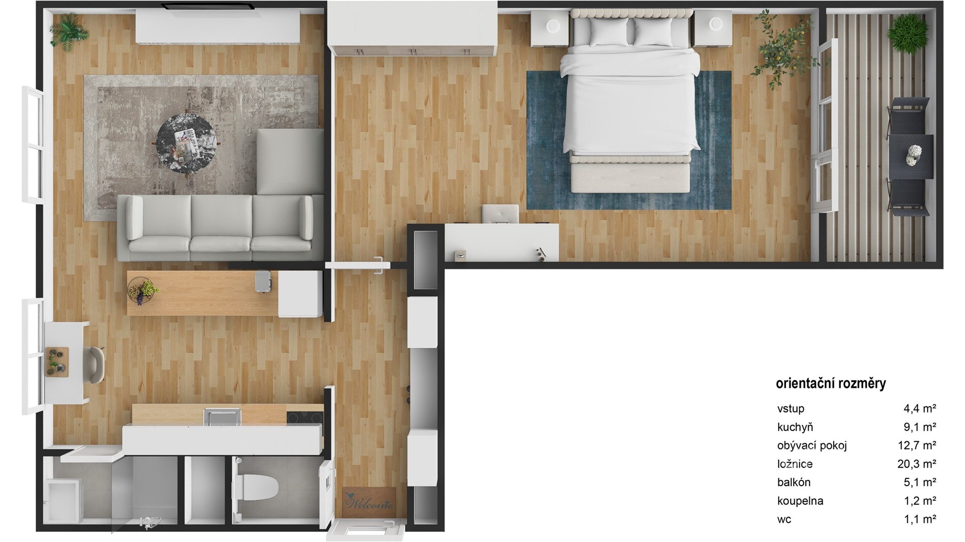 Prodej krásného bytu 2+kk v klidné lokalitě Ivančic – ideální investiční příležitost, 51 m²