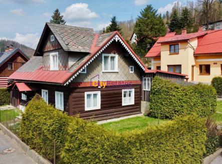 Nabízíme k prodeji chalupu v Krkonoších, v Jablonci nad JIZEROU, nedaleko lyžařských areálů v Rokytnici nad Jizerou, Kamenec, Paseky a mnoha dalších. Dům je více než 120 let starý a má bezesporu úžasného genia loci. Je to stavba, která Vás překvapí. Na první pohled vidíte malý domek, ale ve skutečnosti je užitná plocha stavby bezmála 200 m2 a dispozice 5+1.Je to typická stavba z doby, kdy Krkonoše na podzim zasypal sníh a celou zimu museli být lidé soběstační. O tom svědčí i studna přímo v technickém zázemí domu. Dům se nachází v Jablonci nad Jizerou č.p. 223 a má pozemek o výměře 541 m2. Kromě domu samotného, se na pozemku nachází i garáž pro 1 vůz, venkovní posezení se zastřešením a sklad na zahradní techniku a nářadí. Do domu jsou dva vchody, hlavním vchodem z ulice vejdete do chodby, z níž máte vstupy do privátní části domu se dvěma ložnicemi a WC a na druhé straně se nachází vstup do obývacího pokoje, kuchyně a koupelny. Chodbou vejdete do prostorného technického zázemí domu, kde je další samostatné WC, prádelna, sklady, vstup do sklepa a druhý vstup do domu ze zahrady. V patře jsou umístěné dva pokoje (jeden s úložným prostorem) a dva půdní prostory. Dům je napojen na dostupné inženýrské sítě (kanalizace, veřejný vodovod, elektřina), topení bylo původně na tuhá paliva, nyní je zde pro pohodlí umístěn kotel kombinovaný (elektřina + tuhá paliva). Komín je vyvložkovaný. V celém domě jsou zachována typická dřevěná špaletová okna. Garáž pro jeden vůz je široká 3,1 m, dlouhá 5,1 m a vjezdová vrata mají šířku 2,5 m. Z garáže vyjdete zadním vchodem přes technické zázemí do domu. Nemovitost byla po generace až dosud využívána pro trvalé bydlení. Vlakové nádraží je vzdáleno cca 450 m. Doporučujeme prohlídku tohoto domu, jakmile vejdete dovnitř, obklopí vás atmosféra místa s historií. Koupi je možné financovat hypotečním úvěrem. Vyřízení hypotéky pro případného zájemce je zajištěno, nabídneme Vám zdarma srovnání všech bank a vyjednáme nejpříznivější podmínky financování.
