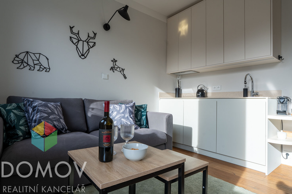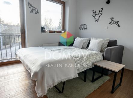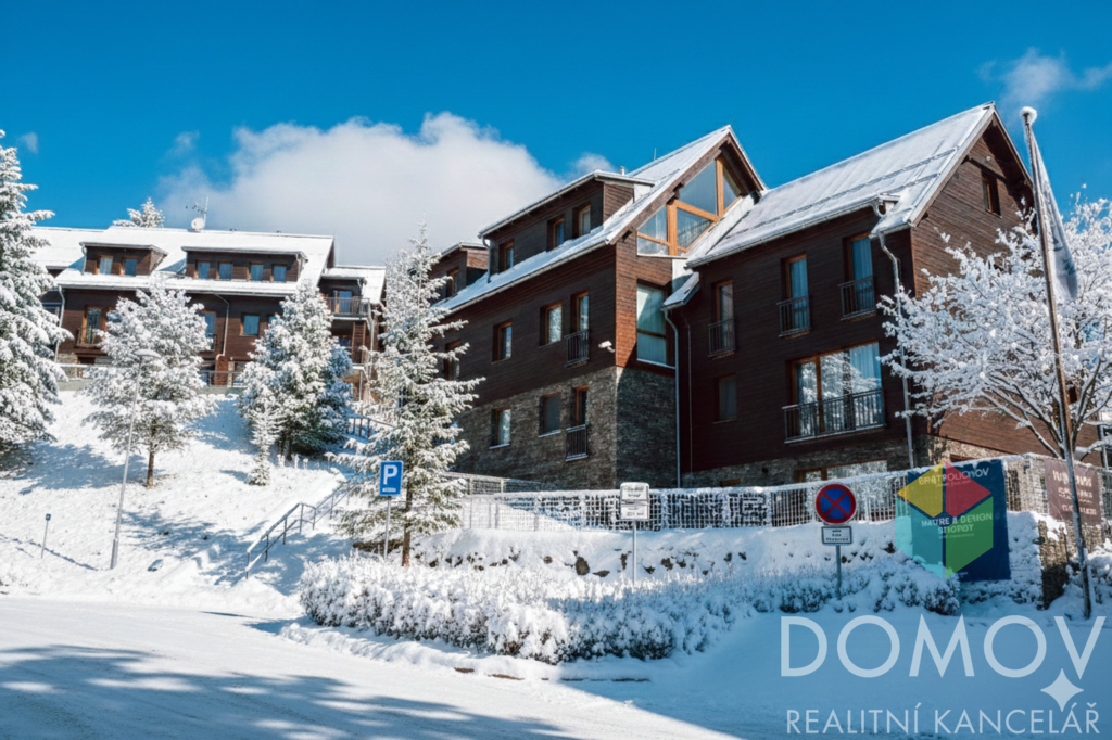 Dovolujeme si Vám nabídnout krásný, moderně zařízený apartmán o velikosti 2+kk v západní části Krkonošského národního parku, v obci Bratrouchov. Bytový dům z roku 2021 je součástí komplexu tří budov propojených podzemními tunely. V nadstandardně zařízeném ateliéru s dispozicí 2+kk a celkové výměře 36,8 m2 byly použity kvalitní materiály, jako jsou dřevěné podlahy, masivní dveře, moderní koupelna (sanita značky Laufen), skandinávská svítidla, kuchyňská linka včetně spotřebičů. Dispoziční členění: vstupní chodba ve které jsou umístěné vestavěné skříně, kuchyňský kout zařízen moderní kuchyňskou linkou se spotřebiči na níž volně navazuje obývací pokoj, vybavená ložnice s vestavěnými skříněmi , koupelna zařízena sprchovým koutem, WC samostatně. Kola, lyže a další věci můžete uložit do vlastního sklepa o výměře 3,8 m2. V ceně je jedno vyhrazené parkovací místo jež náleží k apartmánu. Kuriozitou je systém filtrace odpadních vod a horský vrt s úpravnou vody a vlastní trafostanice. Pozemky a přilehlé okolí monitorují kamery. V apartmánech i ve společných prostorách je zajištěn přístup k vysokorychlostnímu internetu. Apartmán je ideální jako rodinný rekreační objekt nebo jako investiční záměr. Pro zajištění bezproblémového pronajímání je v objektu recepce pro předávání klíčů od apartmánů a dům je vybavený key boxem, možností zajištění úklidu a dálkové ovládání topení. Bratrouchov se nachází 15min do Rokytnici nad Jizerou a 20min od Harrachova, přímo v místě jsou upravované běžkařské stopy. Mimo zimní sezónu jsou pro cyklisty a turisty ideální trasy na Dvoračky, Rezek, Horní Mísečky či Zlaté návrší.