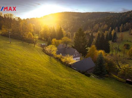 Hledáte místo, které spojuje absolutní soukromí, nádhernou přírodu Krkonoš a zároveň komfort moderního luxusu? Tato tradiční krkonošská chalupa po nákladné, rozsáhlé a precizní rekonstrukci splní očekávání těch nejnáročnějších zájemců. Nabízí dispozici 7+1 s příslušenstvím a velkorysou podlahovou plochu 383m2. V přízemí se nachází prostorná, do detailu vybavená obytná kuchyně s jídelnou, ideální pro velké rodinné setkání či přátelské posezení. Atmosféru dotváří krásná kachlová kamna a stylová replika místních stojacích hodin s původním strojkem. Součástí přízemí je i odpočinková místnost, využitelná i jako ložnice s vlastní koupelnou vybavenou špičkovou saunou KLAFS (finská sauna, saunarium, infrasauna) a parní sprchou KERAMAG AURA. Samozřejmostí je i samostatné WC. V zadní části domu se nachází moderní kotelna a původní kamenný sklep s celoroční stálou teplotou. Dispozici přízemí dále tvoří místnost s výjimečným atraktivním prvkem - přiznanou skalní stěnou, po níž jemně stékají pramínky vody. Další místnost, která je vybavená barem a elektrickým krbem zn. ELEMENT, tvoří společenskou část chalupy a navazuje na ní kinosál vybavený technikou B&W. Z této místnosti je vstup na spodní venkovní terasu. Nad tímto křídlem se nacházejí dvě ložnice s vlastní koupelnou a jedna je se vstupem na druhou vyvýšenou venkovní terasu, která je vybavená stylovým nábytkem EcoFurn, Solo Stove. Dominantou hlavní chodby chalupy je masivní dubové schodiště, v patře nad hlavní částí chalupy se nacházejí tři samostatné ložnice s vlastní koupenou. Dispozice chalupy tímto zajišťuje dostatek soukromí pro vícečlennou rodinu nebo početnější návštěvu. V interiéru naleznete řadu originálních i rekonstruovaných prvků tradičního krkonošského nábytku, které dodávají chalupě jedinečný charakter. Chalupa byla rekonstruovaná v roce 2006, s důrazem na kvalitu použitých materiálů a dlouhodobou životnost. Měděné rozvody podlahového vytápění Rehau, speciální střešní krytina Capacco, designové vypínače a zásuvky Berker, dveřní kování ruční výroby. O vytápění se starají dvě tepelná čerpadla Stiebel Eltron, nechybí ani kotel na dřevo či možnost využít plyn (2t zásobník propan-butan). V chalupě jsou dvě rekuperace, dvě klimatizace Haier, bezpečností kamerový systém, stabilní a vysokorychlostní DSL internet. Součástí komfortního vybavení je chytrý systém vytápění s možností dálkového ovládání přes internet - pohodlně si nastavíte teplotu ještě před příjezdem na chalupu. U domu se nacházejí tři venkovní terasy, hlavní je s venkovním krbem, v patře je terasa s ohništěm a třetí relaxační terasa je s venkovní vířivkou HotSpring. Součástí je garáž a soukromé parkování pro 4 vozy. Chalupu obklopuje rozsáhlý pozemek o velikosti 27.504m2, jedná se o jedno z nejzachovalejších krkonošských údolí, kde naleznete pouze původní chalupy a minimální provoz. Nemovitost stojí v klidné neprůjezdné části obce Horní Dušnice obklopená lesy, loukami a protékajícím potůčkem s pitnou vodou.