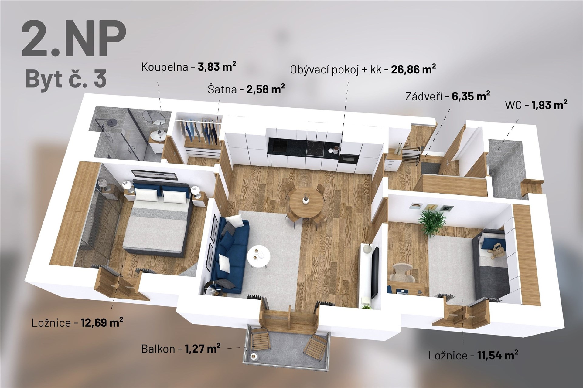 Nabízíme k prodeji moderní byt o dispozici 3+kk a podlahové ploše 64 m² a balkónem (2m2), který splňuje veškeré požadavky na pohodlné bydlení či rekreační využití. Byt je součástí nového developerského projektu a představuje ideální kombinaci funkčnosti, komfortu a atraktivní lokality. Dispozice a vybavení: Obývací část: Prostorný obývací pokoj s kuchyňským koutem, který poskytuje dostatek místa pro rodinné chvíle i hosty. Soukromé prostory: Ložnice a další samostatný pokoj, které lze využít jako dětský pokoj, pracovnu nebo pokoj pro hosty. Sanitární zázemí: Moderní koupelna a samostatné WC zaručují maximální pohodlí. Další výhody: Součástí bytu je sklepní kóje a parkovací stání v uzavřeném dvoře, které zajišťují komfort a bezpečnost. Lokalita: Byt je skvělou alternativou horského apartmánu, s možností relaxace v blízkých horách i pohodlným zázemím města. V dojezdové vzdálenosti se nachází tři populární horská střediska, ideální pro lyžování, cyklistiku a další outdoorové aktivity. Standardy a informace o projektu: Byt je vybaven vysoce kvalitními materiály a moderními prvky, které jsou specifikovány v našich standardech dostupných na webových stránkách projektu. Zde najdete také další informace a vizualizace celého projektu. Harmonogram výstavby: Zahájení výstavby: leden 2026 Vymezení jednotek: červenec 2026 Kolaudace: přelom roku 2026/2027 Výhody: Ideální pro rodinné bydlení, rekreační využití nebo jako investiční příležitost. Atraktivní lokalita s kombinací horského prostředí a městských výhod. Pro více informací nebo prohlídku mě neváhejte kontaktovat.